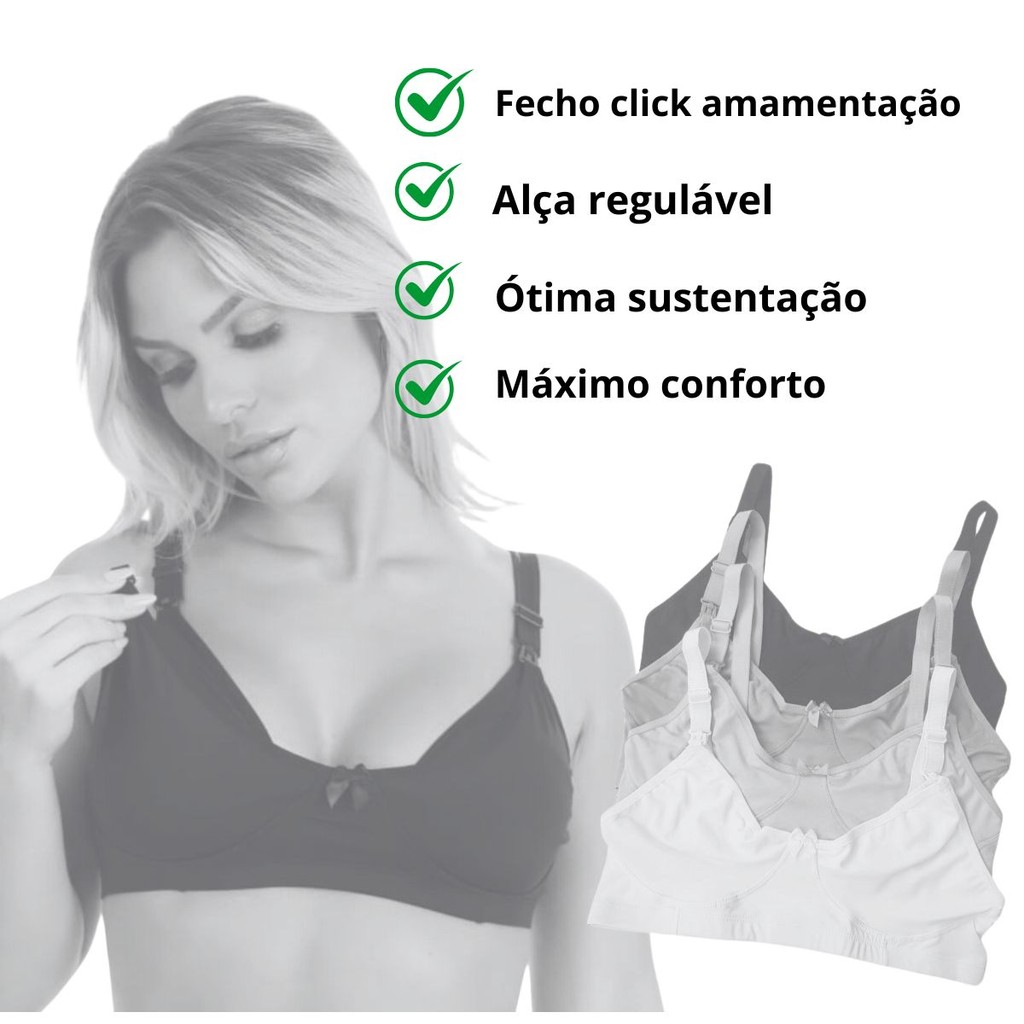 Kit 3 Sutiã Amamentação Reforçado Gestante Grávida Maternidade sutian - AmaLiz