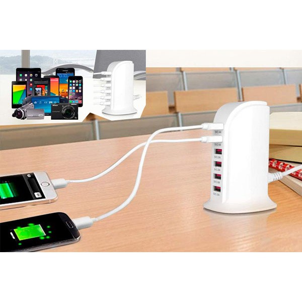 Estação de carregamento USB com 5 saídas 5V/4A.