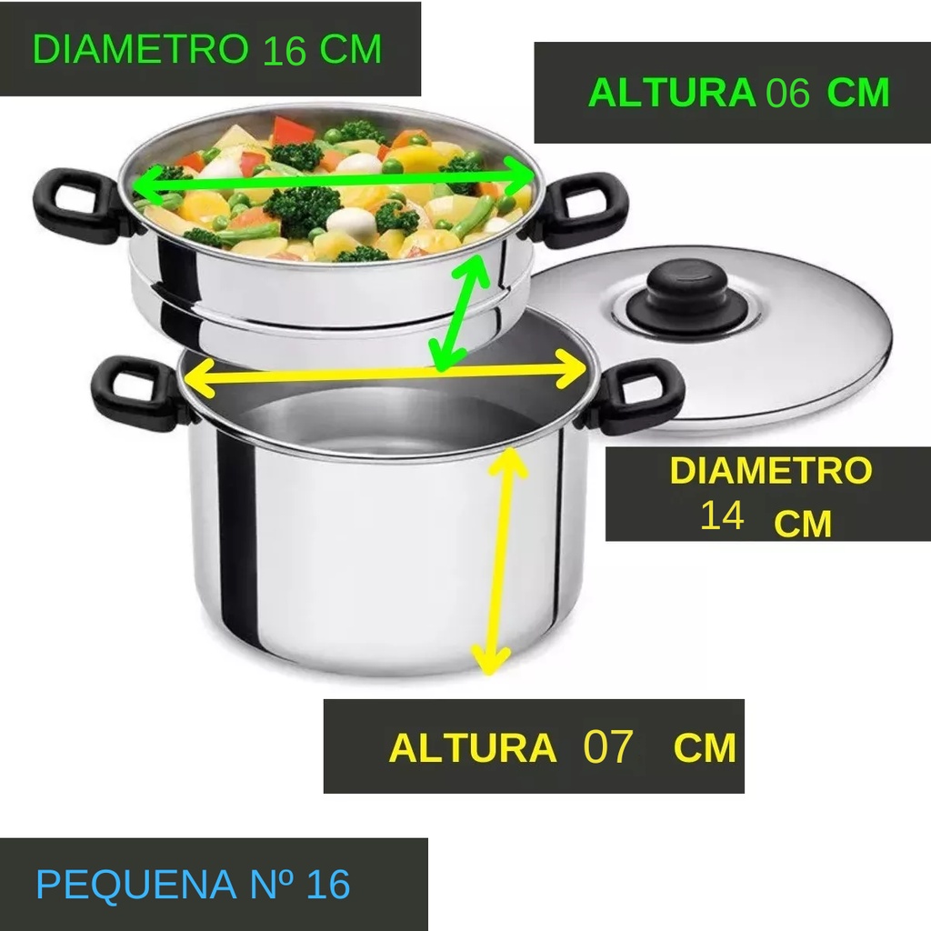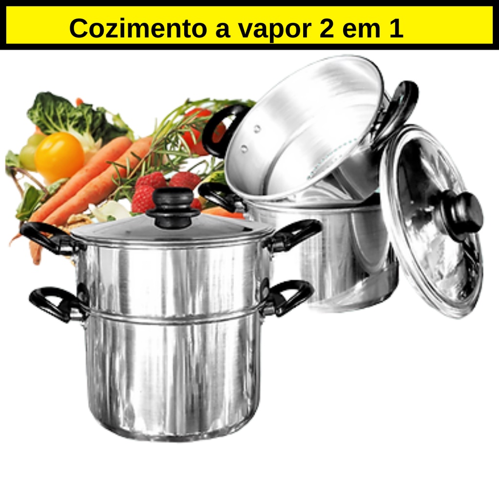 Panela 2 Em 1 Cozimento Vapor Banho Maria Em Aluminio Polido