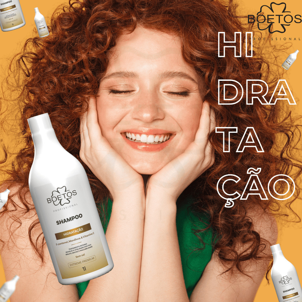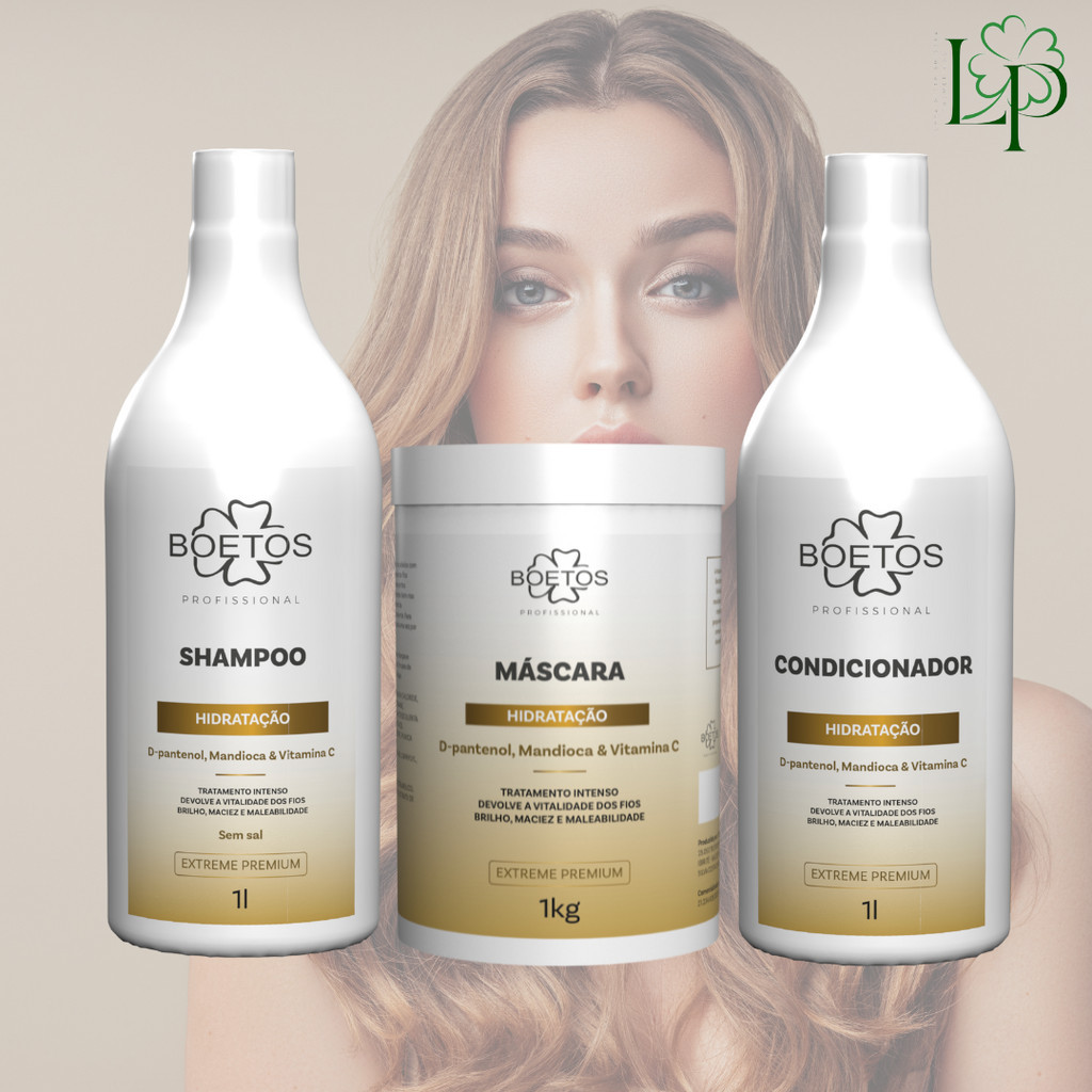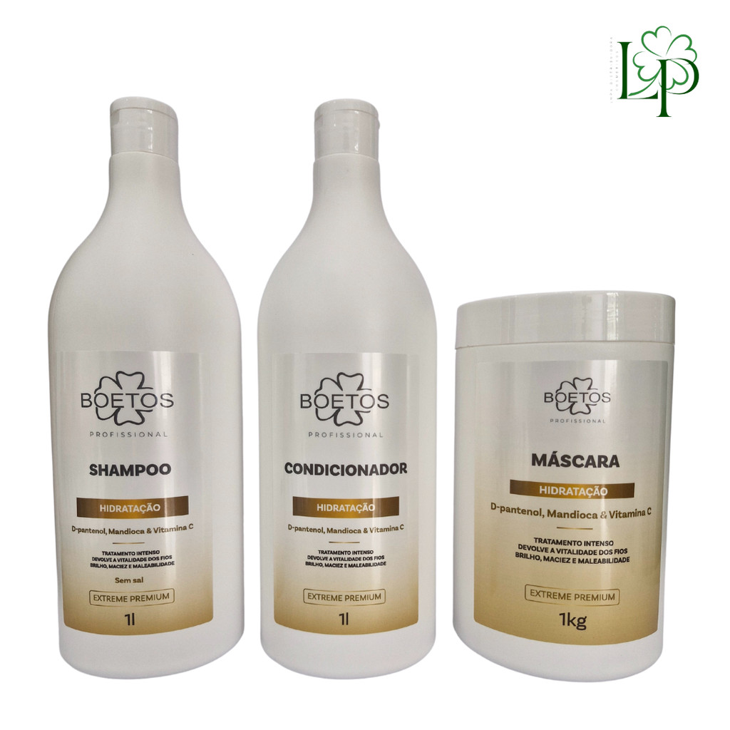 Kit de Hidratação D'Pantenol, Mandioca e Vitamina C shampoo, condicionador, máscara, Leave in Boetos Profissional