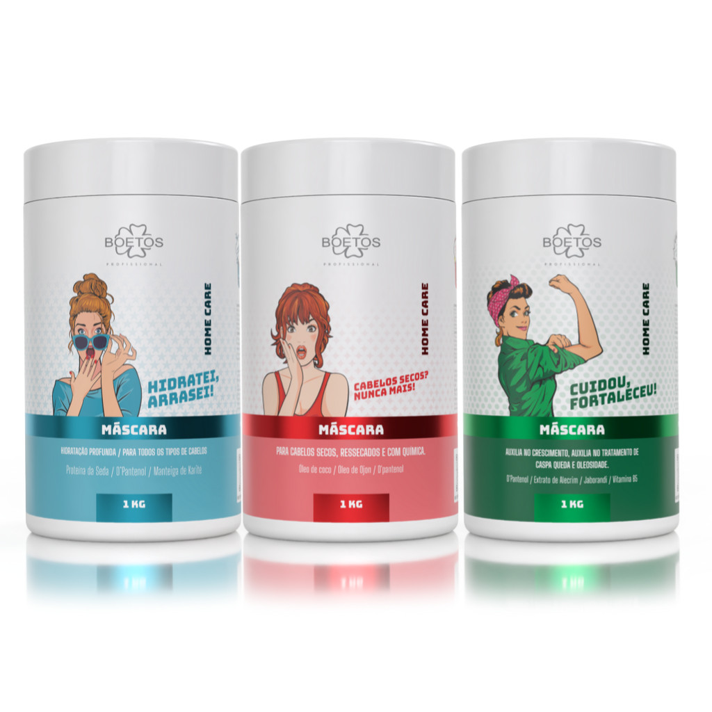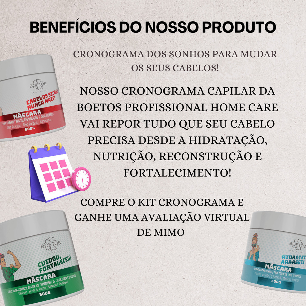 Cronograma Capilar HNR Hidratação Nutrição Reconstrução todos os cabelos Boetos Home Care 1kg
