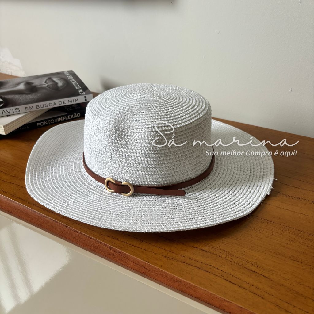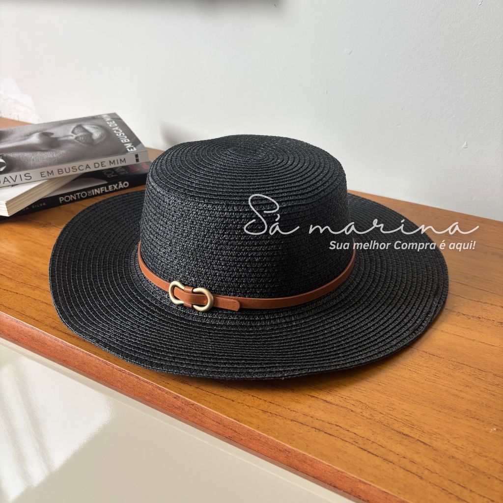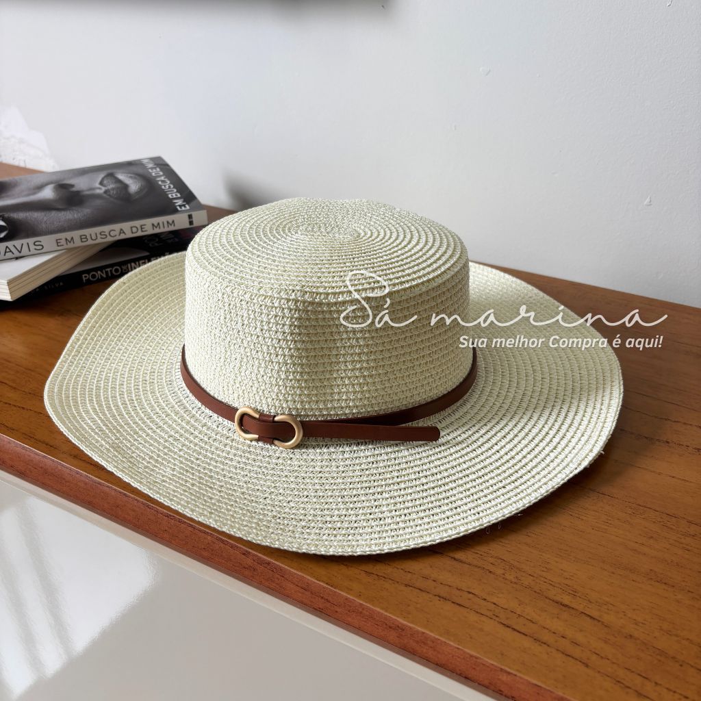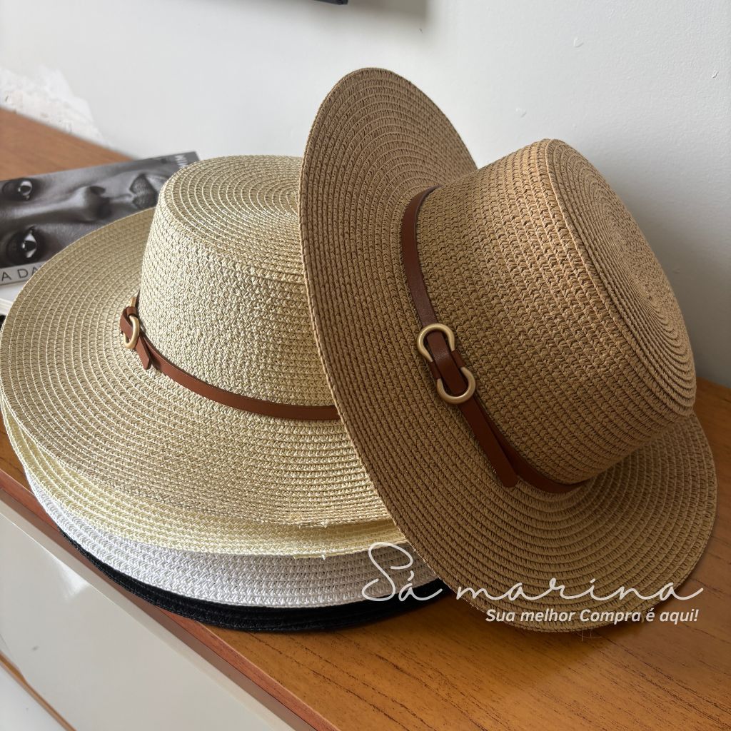 Chapéu Feminino de Palha Elegante com Fivela e Cinto Couro - Estilo Retrô e Sofisticado Verão PARIS LAÇO
