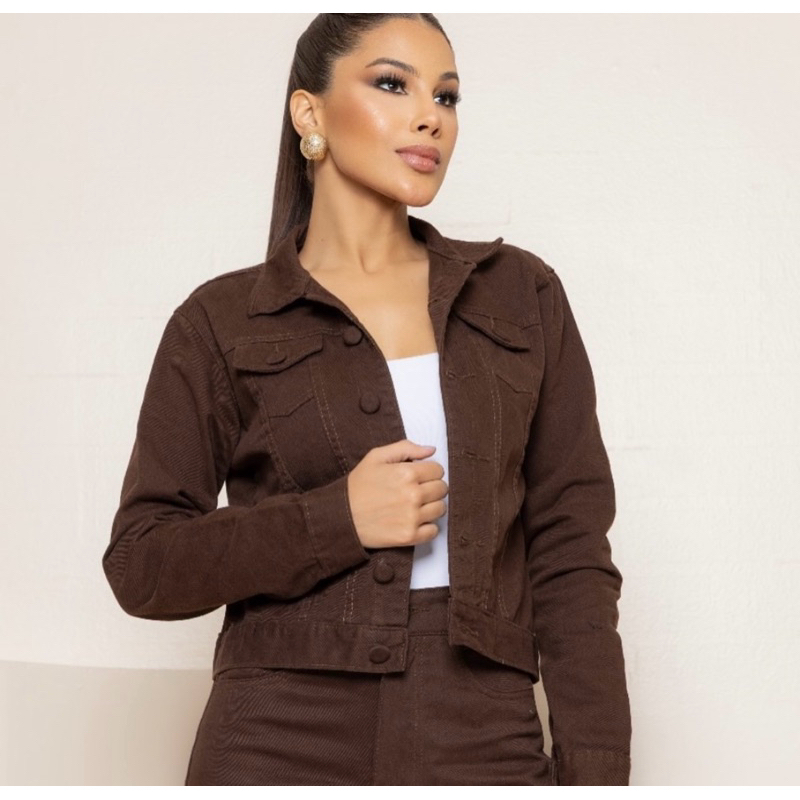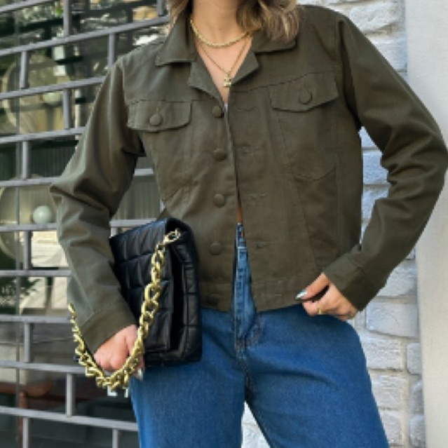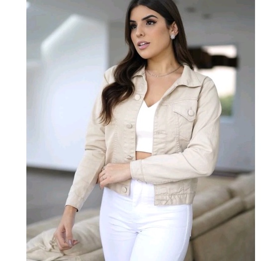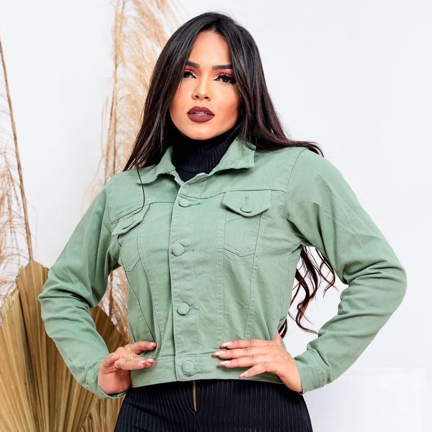 Jaqueta Jeans feminina Verde Claro com Lycra manga longa