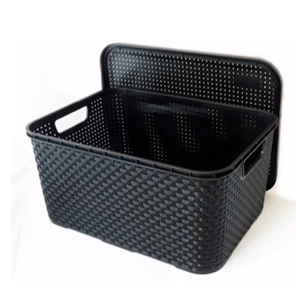 Kit Com 10 Cestos Caixas Organizadoras Rattan Com Tampa 15 Litros Preto - TOY 25593