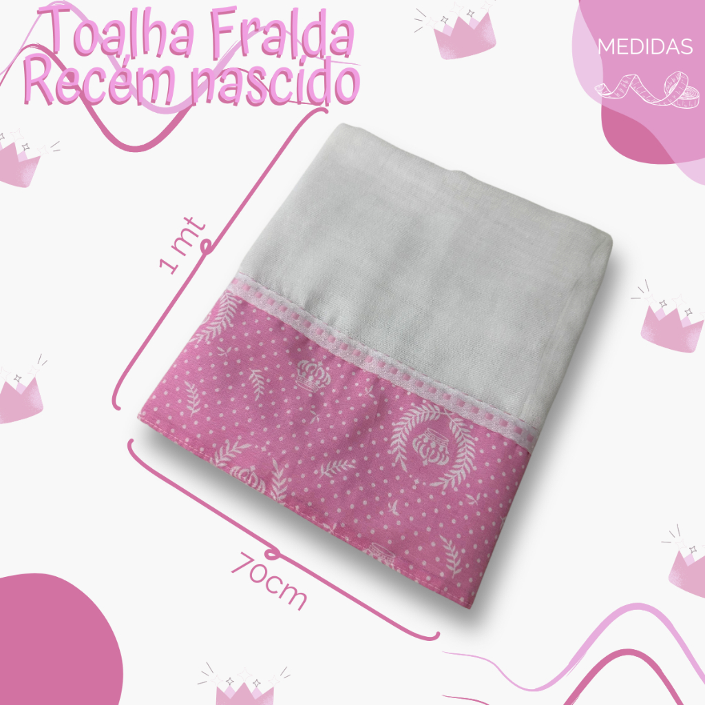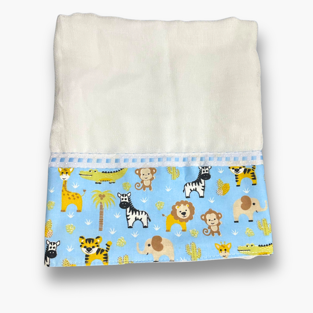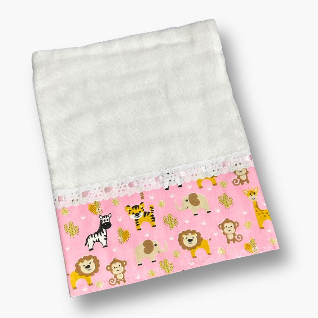 Toalha Fralda para Recém-nascido 100% algodão com barrado estampado