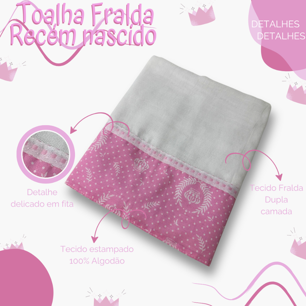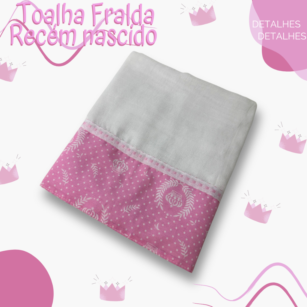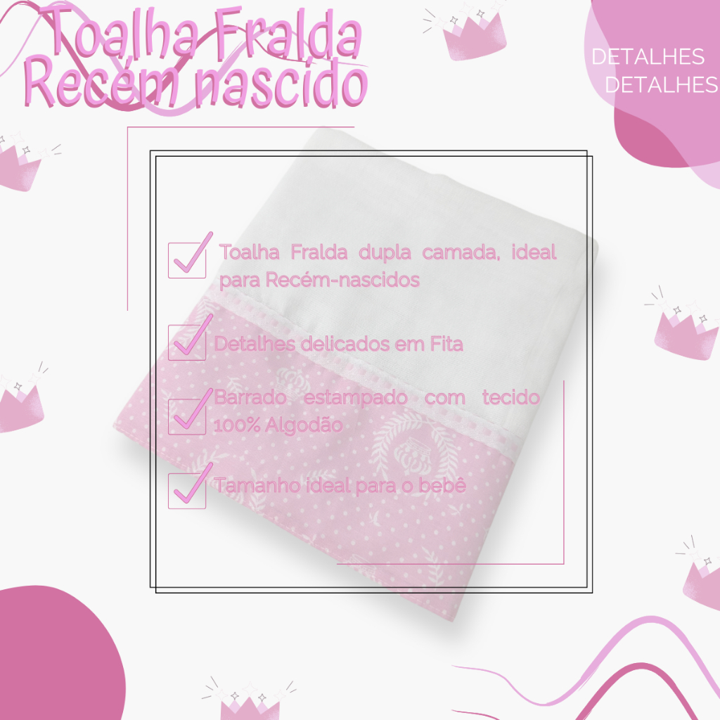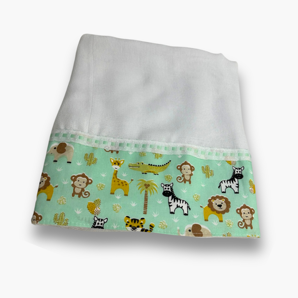 Toalha Fralda para Recém-nascido 100% algodão com barrado estampado