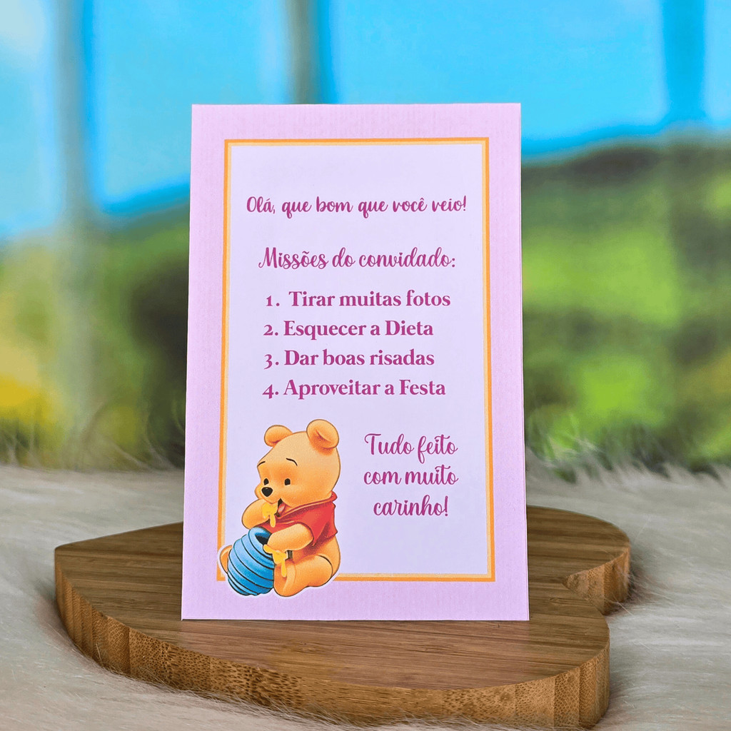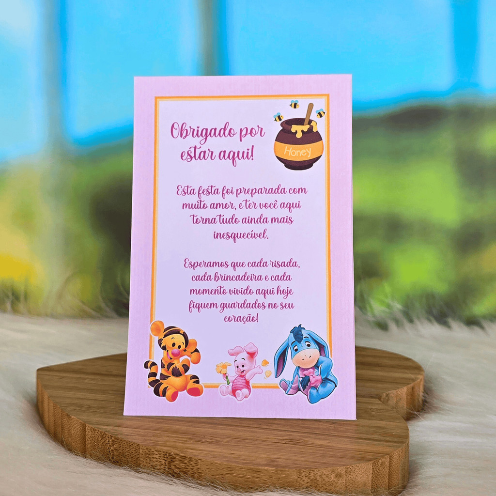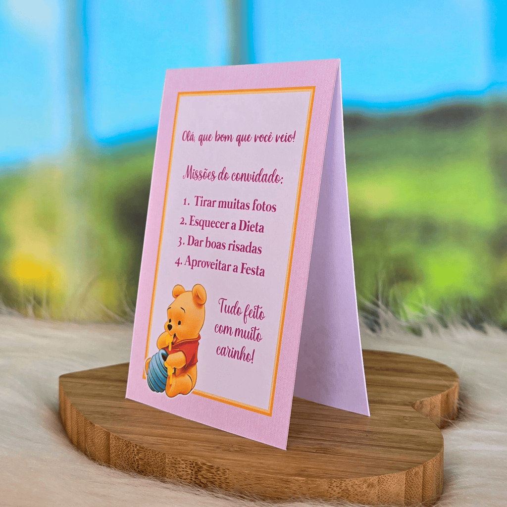 10 a 30 Plaquinhas de mesa URSINHO POOH BABY ROSA menina - Centro de mesa Lembrancinha de festa infantil