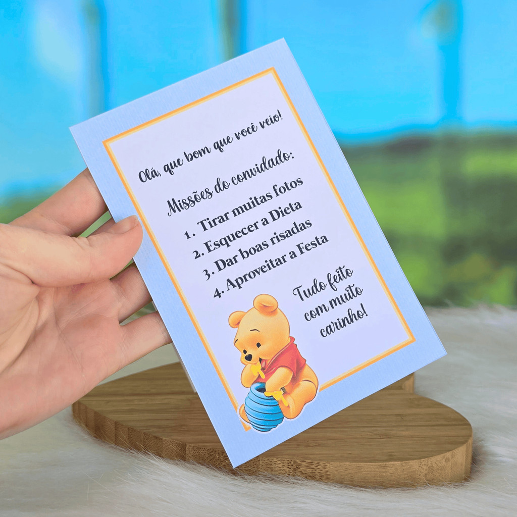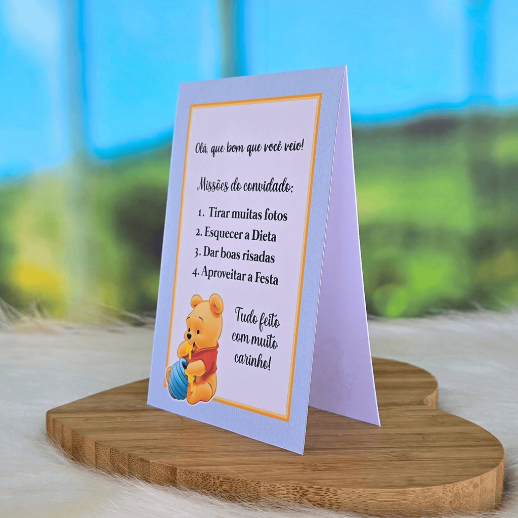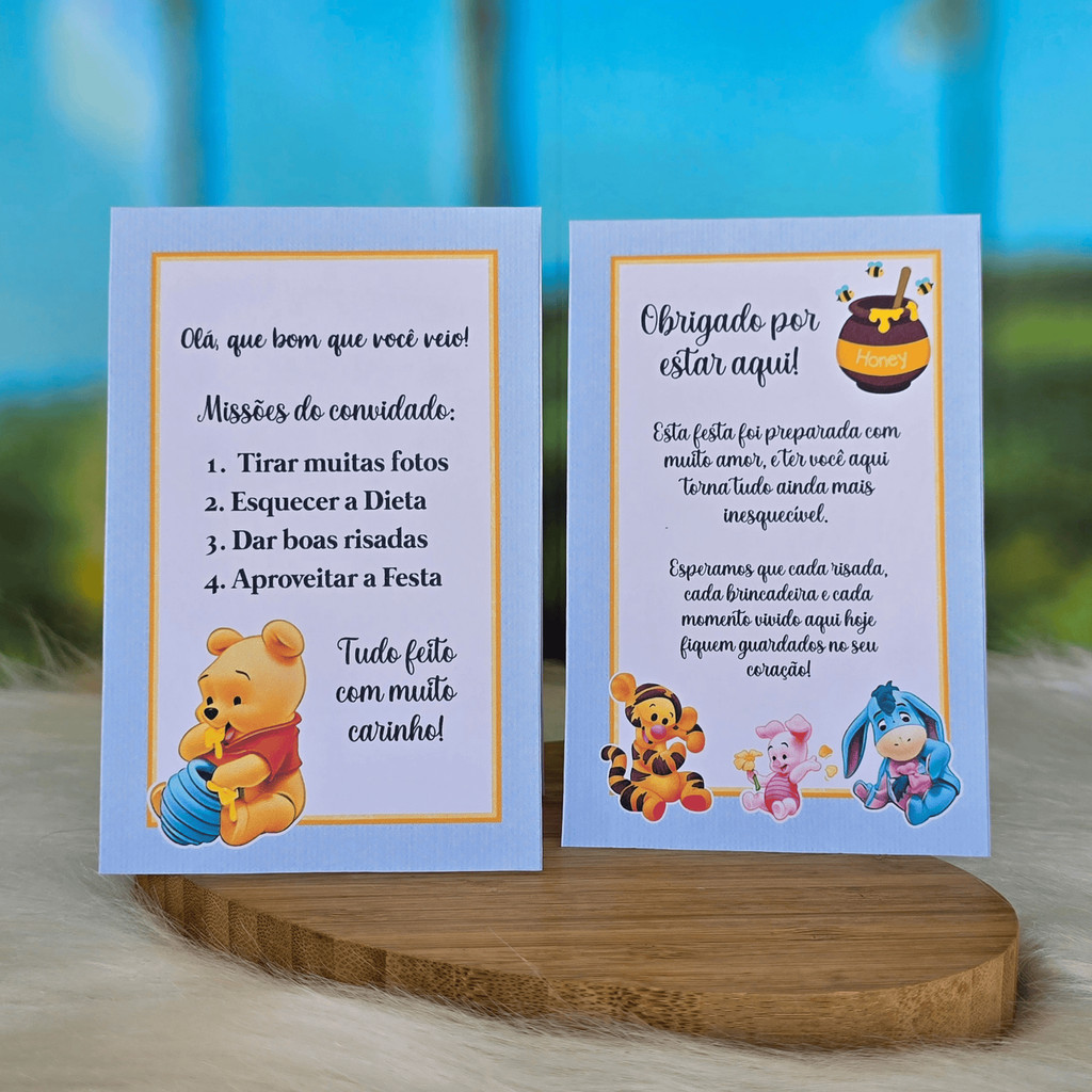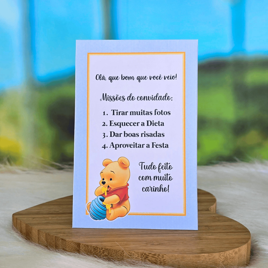 10 a 30 Plaquinhas de mesa URSINHO POOH BABY AZUL menino - Centro de mesa Lembrancinha de festa infantil