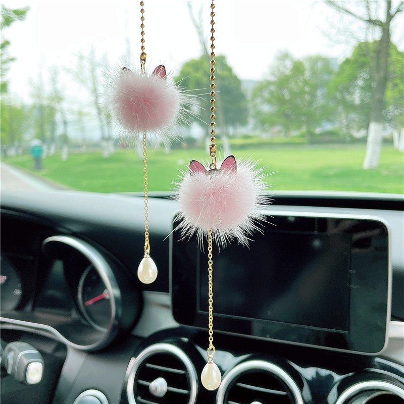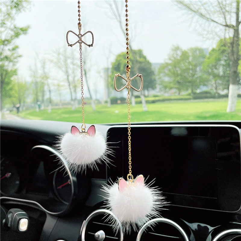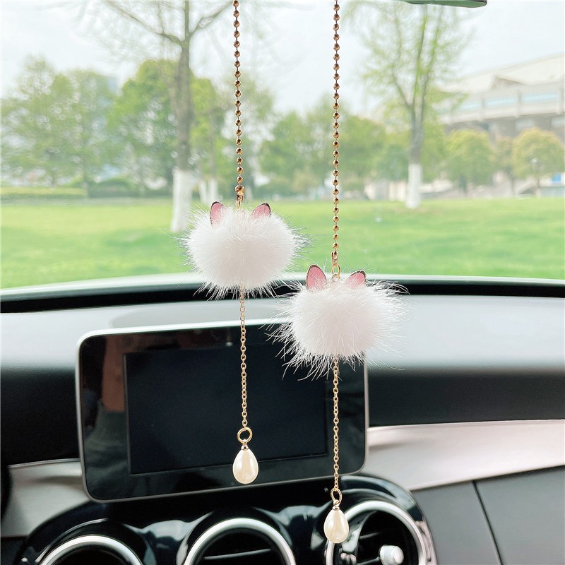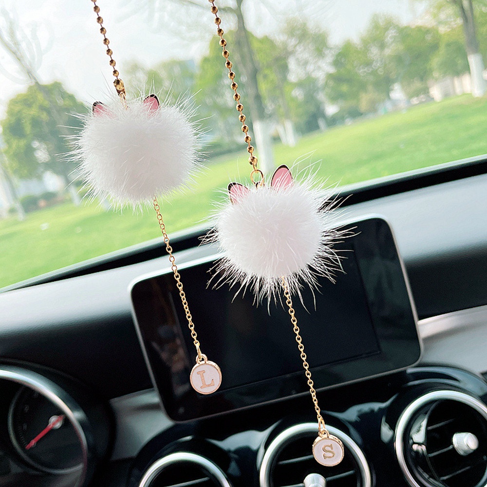Acessórios De Pendurar Espelho Retrovisor Para Mulheres , Bola De Pelúcia Branca/Rosa Carros , Ornamento Da Sorte Pendant (Cat)