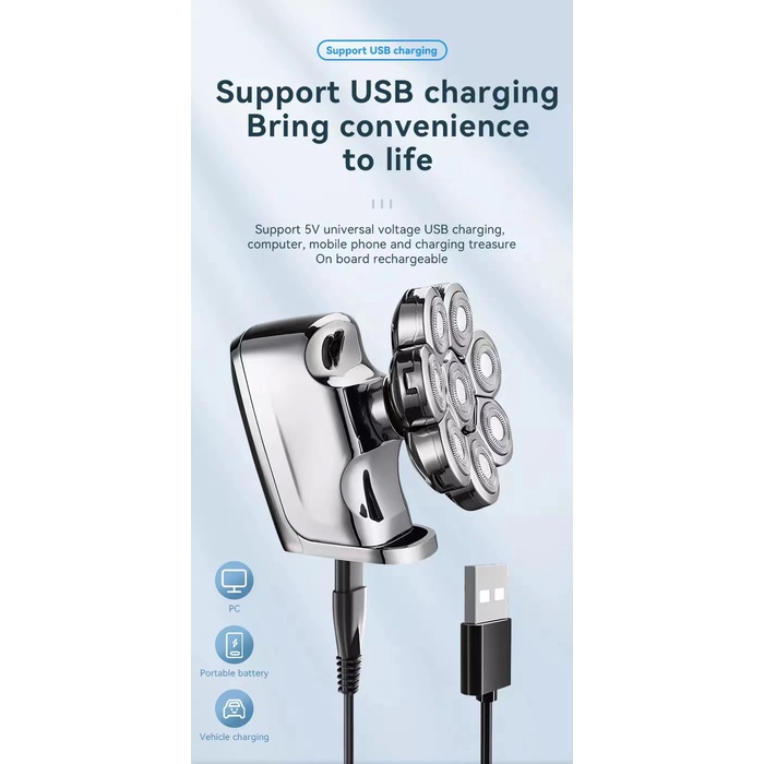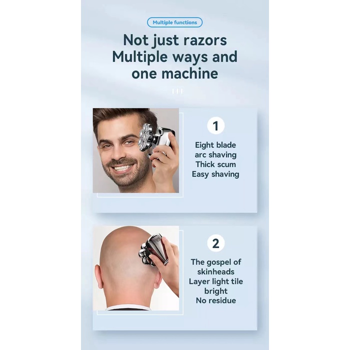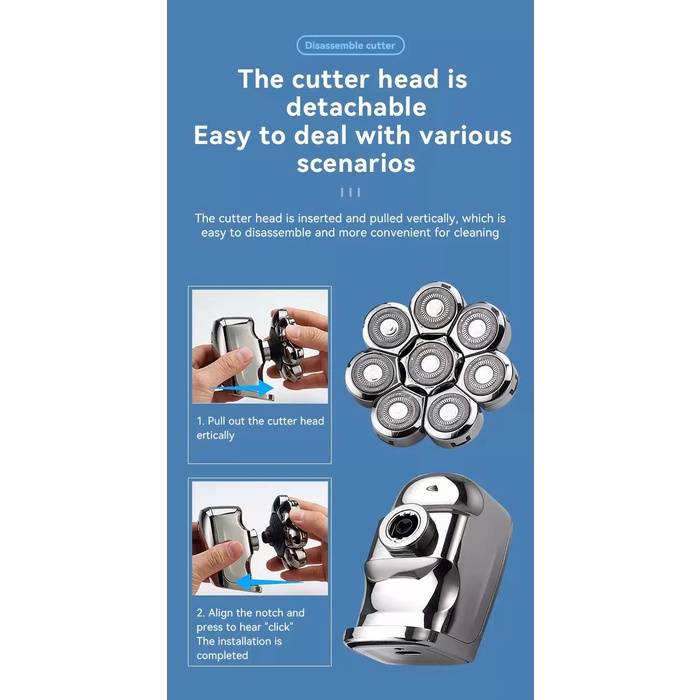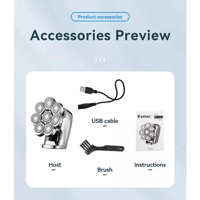 Kemei 8 Cabeças Barbeador Elétrico 8D Homens Barba Rotativa Recarregável À Prova D'água Mini Máquina De Barbear Portátil Seco Úmido Para Careca