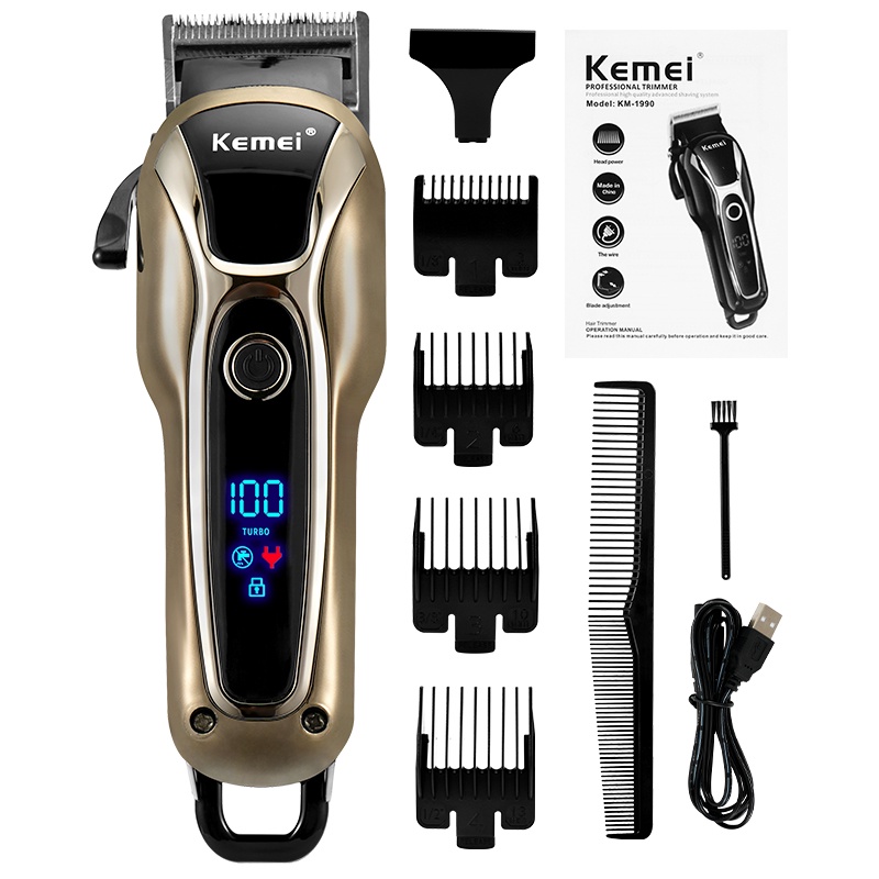 Kemei Máquina De Corte Profissional Barbeiro De Acabamento Elétrico Recarregável Aparador Barba Barbeador Sem Fio Com