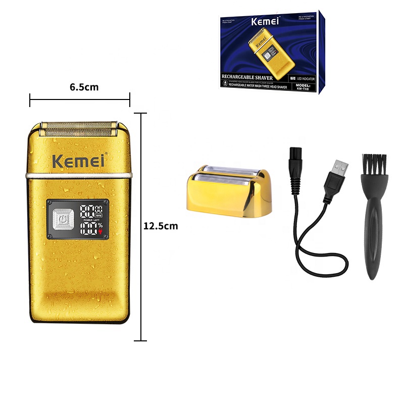 Kemei Barbeador Recarregável De Folha Homens Elétrico Poderoso Cabeça Careca Lavável Ultra Fechado Máquina De Barbear 8000RPM