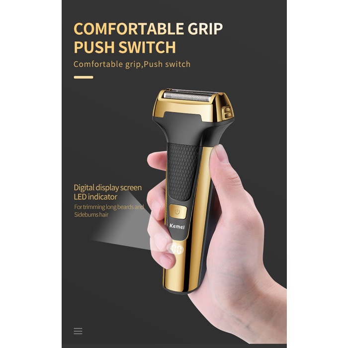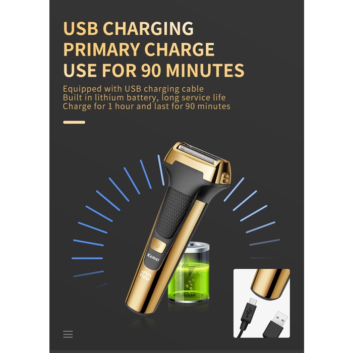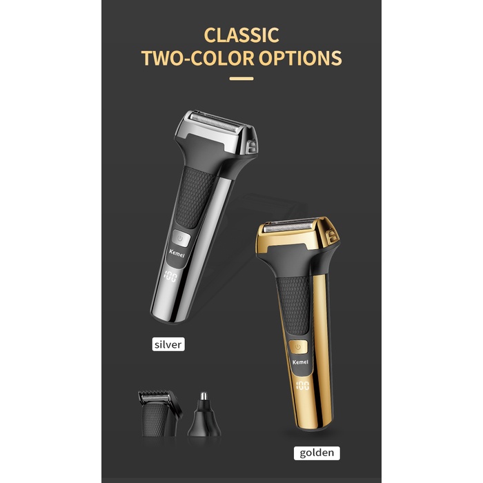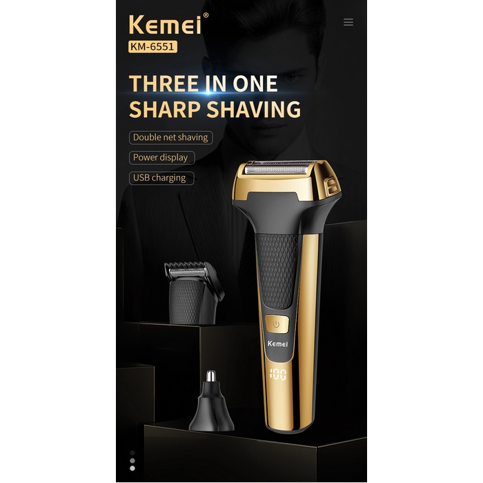 Kemei Multifuncional Homens Barbeador Elétrico De Lâmina De Ouro Orelha De Nariz 3 Em 1 USB Cortador De Cabelo