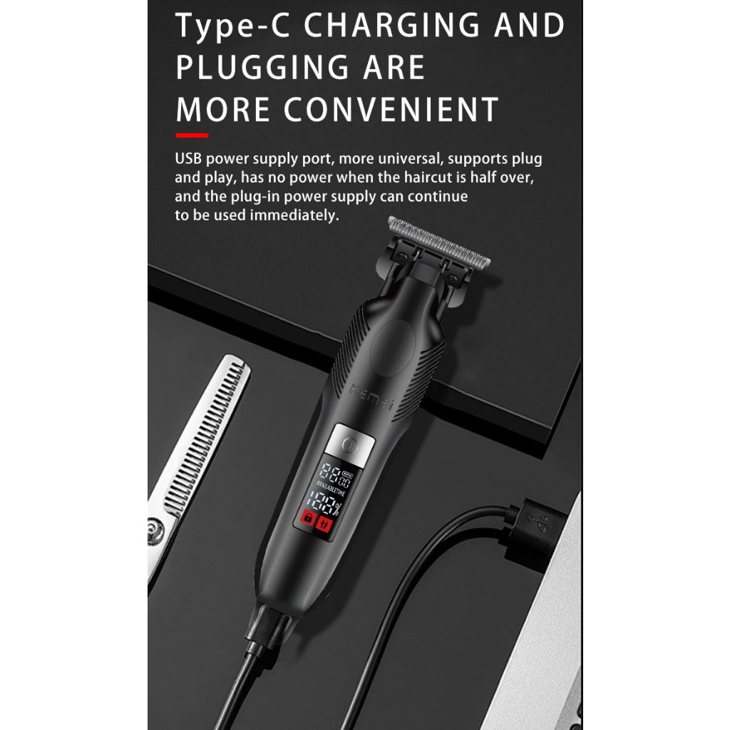 Kemei 2284 Aparador De Cabelo Sem Fio Com Gapped Zero Barbeador Profissional Para Homens Acabamento Máquina De Corte Recarregável