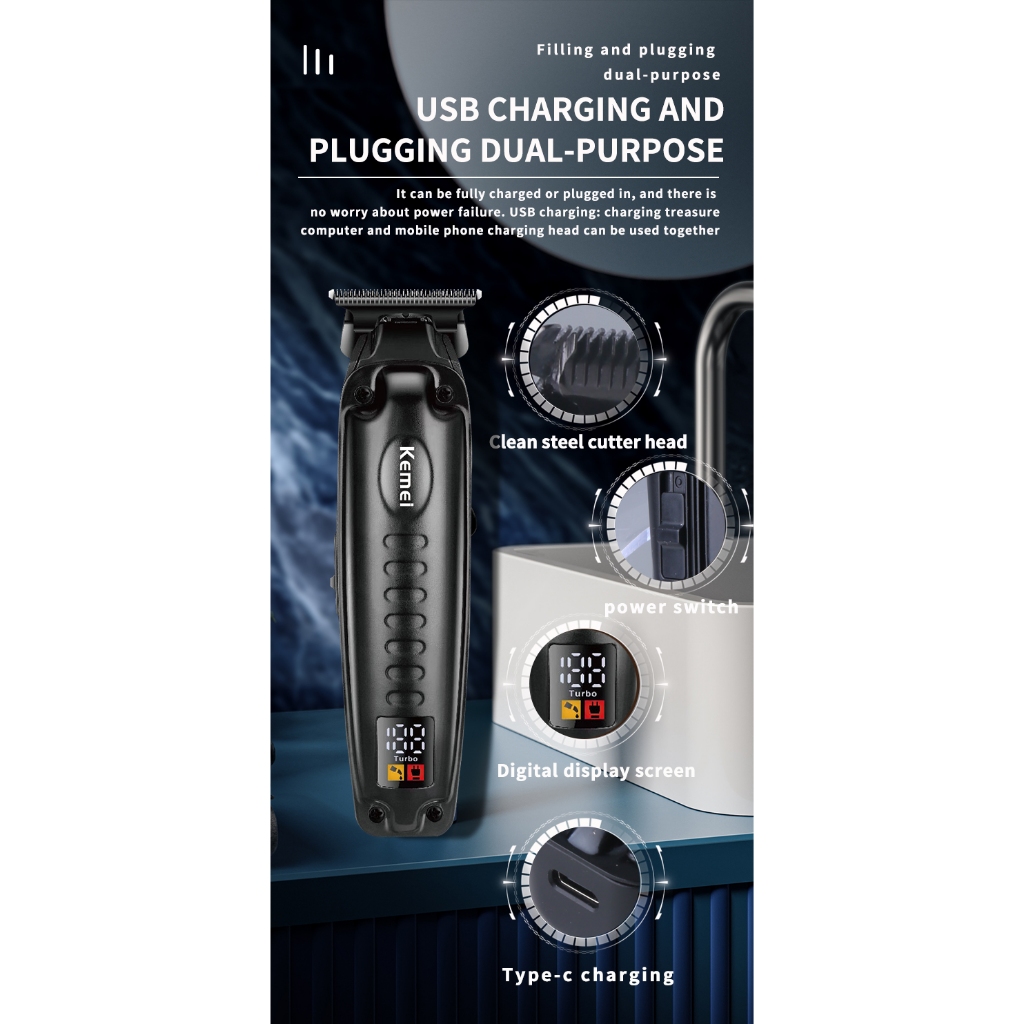KEMEI Clippers De Cabelo Preto Para Homens Sem Fio Corte Barbeiro Profissionais USB Recarregável Cabelos