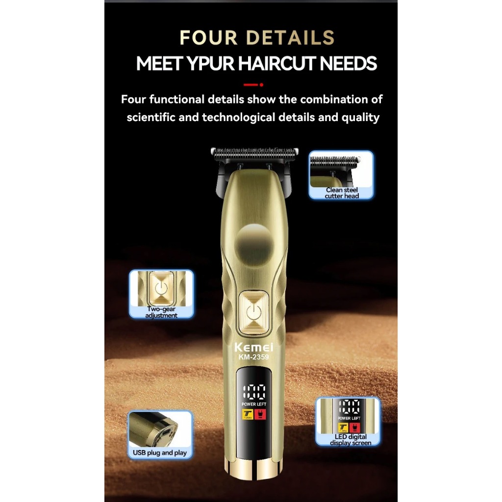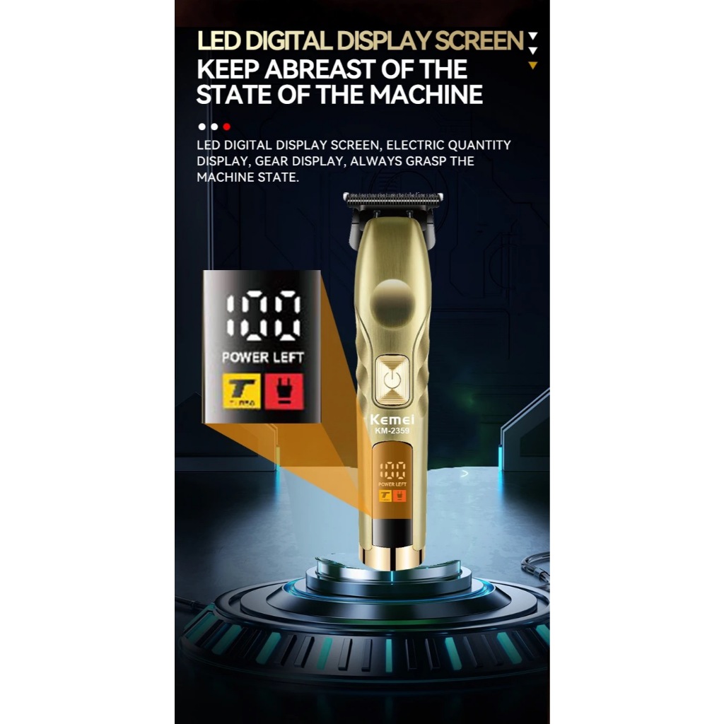 Aparador De Cabelo Kemei Profissional Sem Fio De Alto Torque Com Lâmina Em T De Zero Fendas Clippers Acabamento Fechado De Barbeiro Máquina De Corte Para Homens