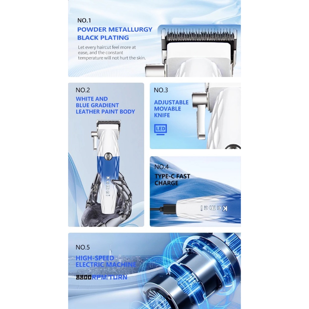 Kemei Profissional Barbeiro Máquina De Cortar Cabelo Com Lâmina DLC 8800RPM Aparador De Elétrico Sem Fio Recarregável Co