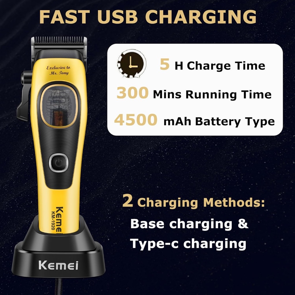 Kemei 1920 Máquina De Cortar Cabelo Profissional Masculina 4500 MAh Barbeiro Corte De Sem Fio Aparador De 2 Tampas Modul