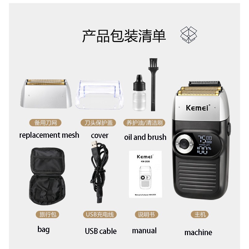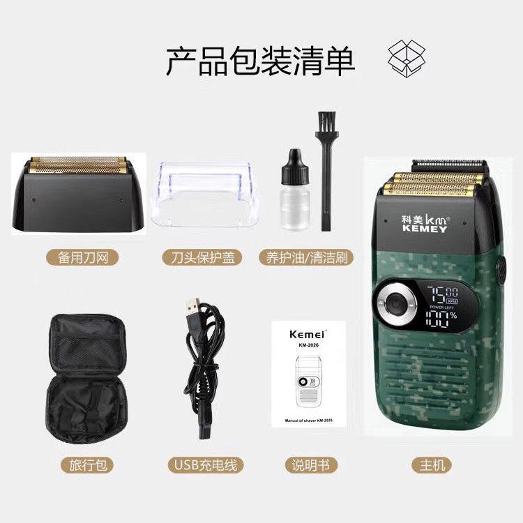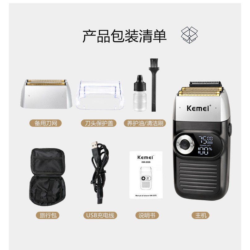 Barbeador Elétrico Kemei Recarregável Para Máquina De Barba Masculina Km-2026