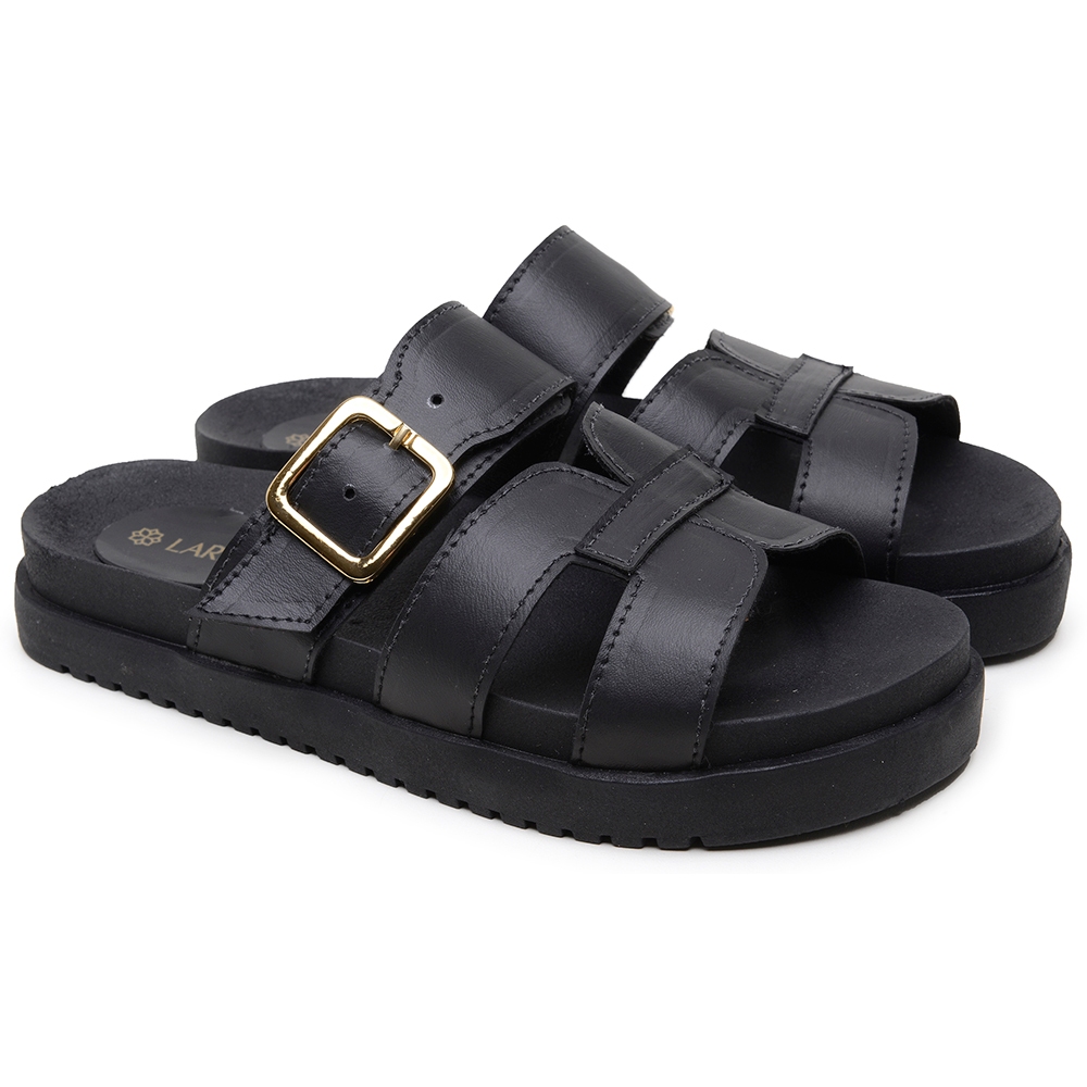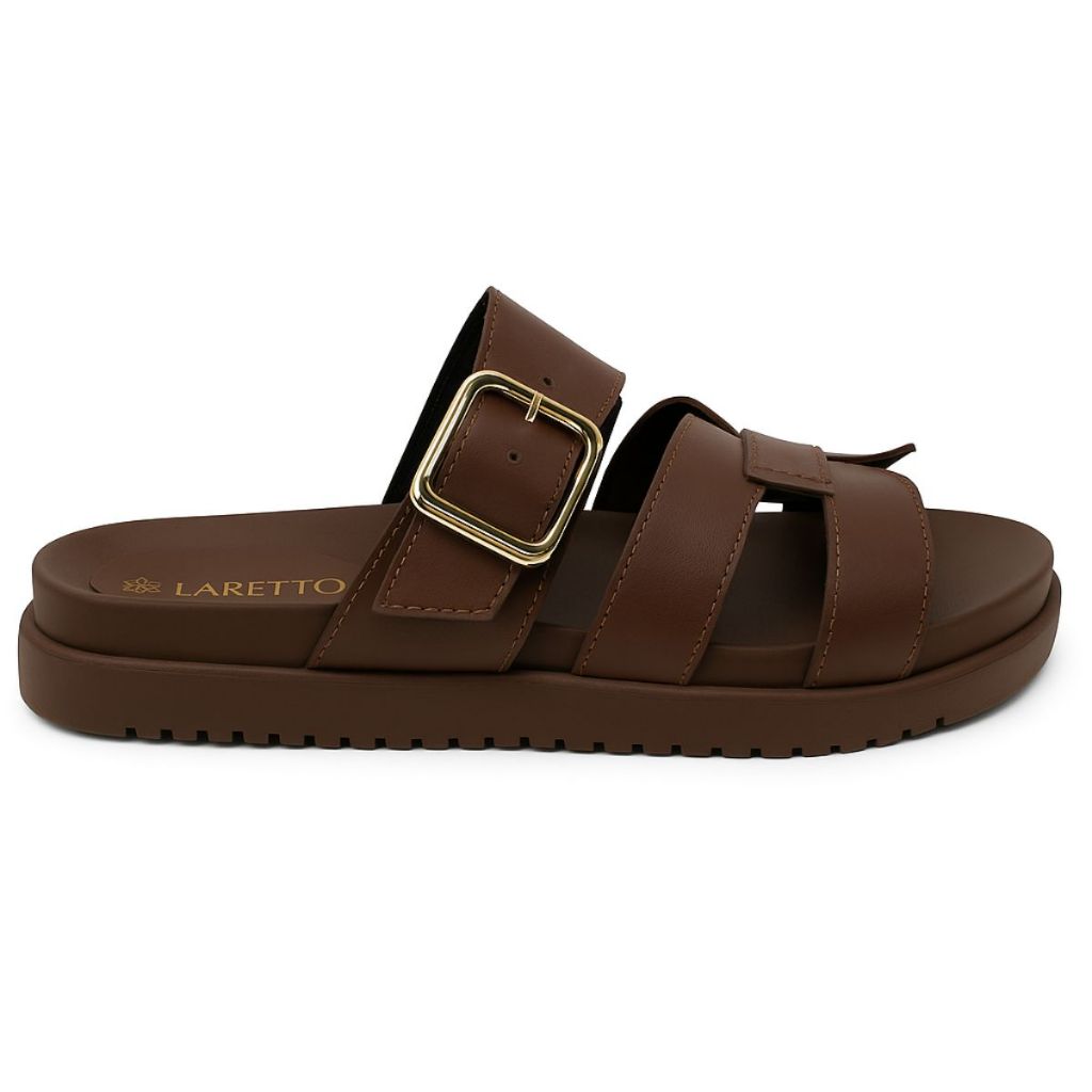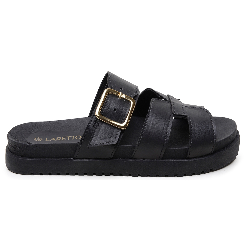 Papete H Flat Rasteira Feminina Laretto Conforto com Fivela Calce Fácil Clássica Básica Tendência Verão
