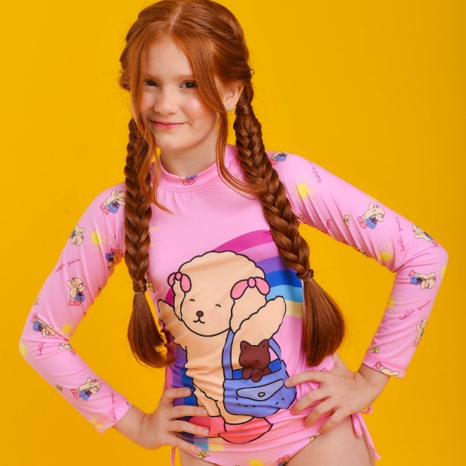 Conjunto Infantil UV50+ Ursinha Roupa de Praia, piscina, clube, lazer ao ar livre infantis.