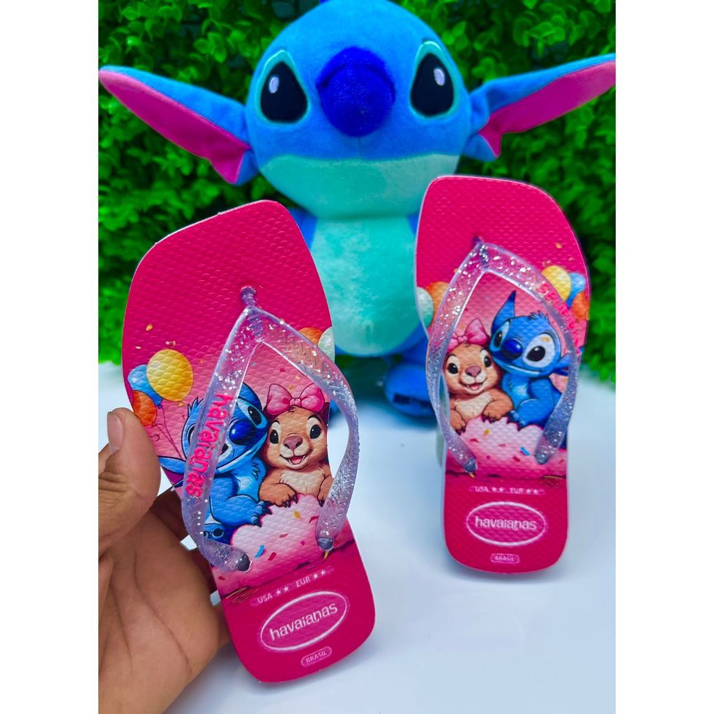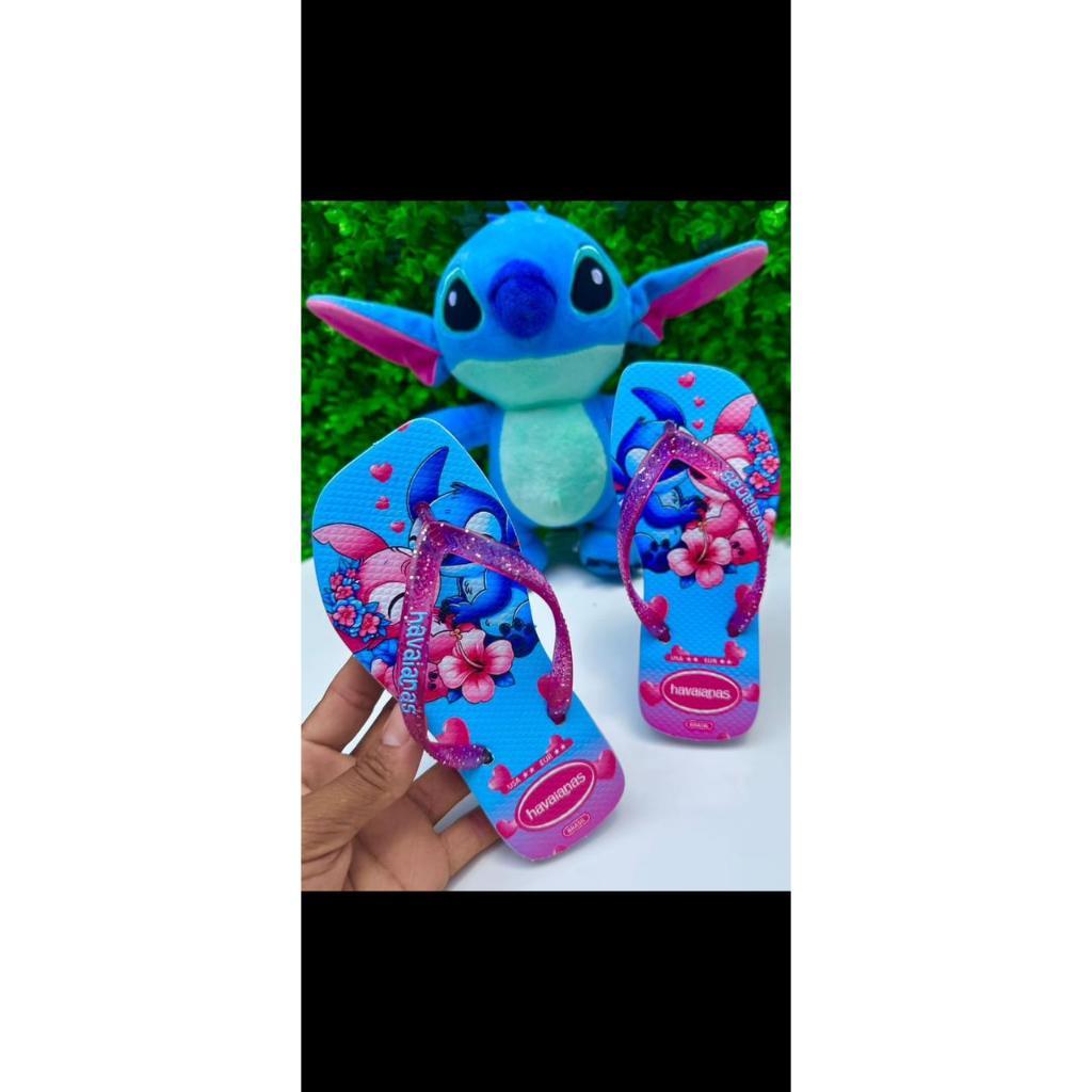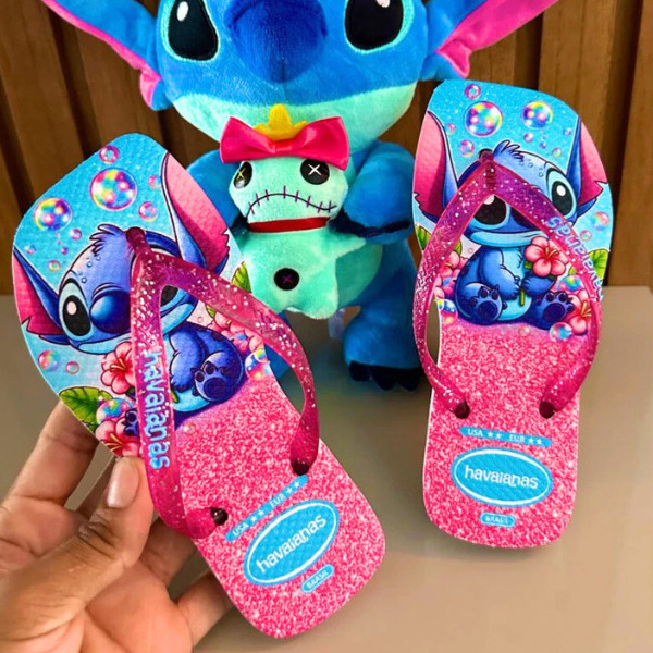 Chinelos Desenho Stitch Glitter Feminino Infantil Lindo e Macio