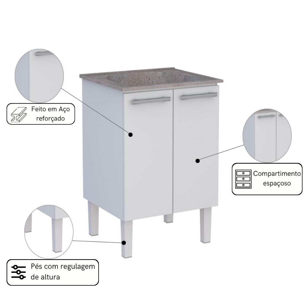 Gabinete para Lavanderia em Aço com Tanque Surubim Branco