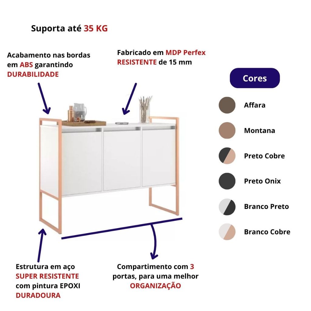 Balcão Buffet Aparador Industrial 3 Portas Egito