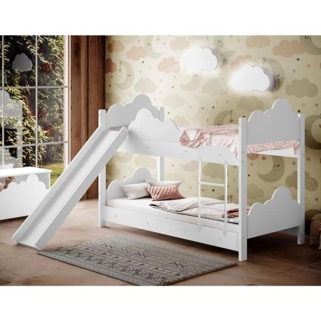 Beliche Ayla Branco com Escorregador e Colchões