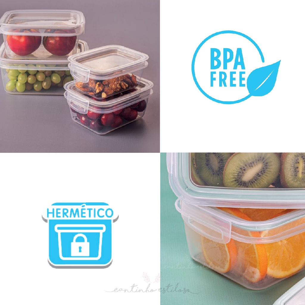 Conjunto 8 Potes 175 ml Hermético Mantimento Trava Mais