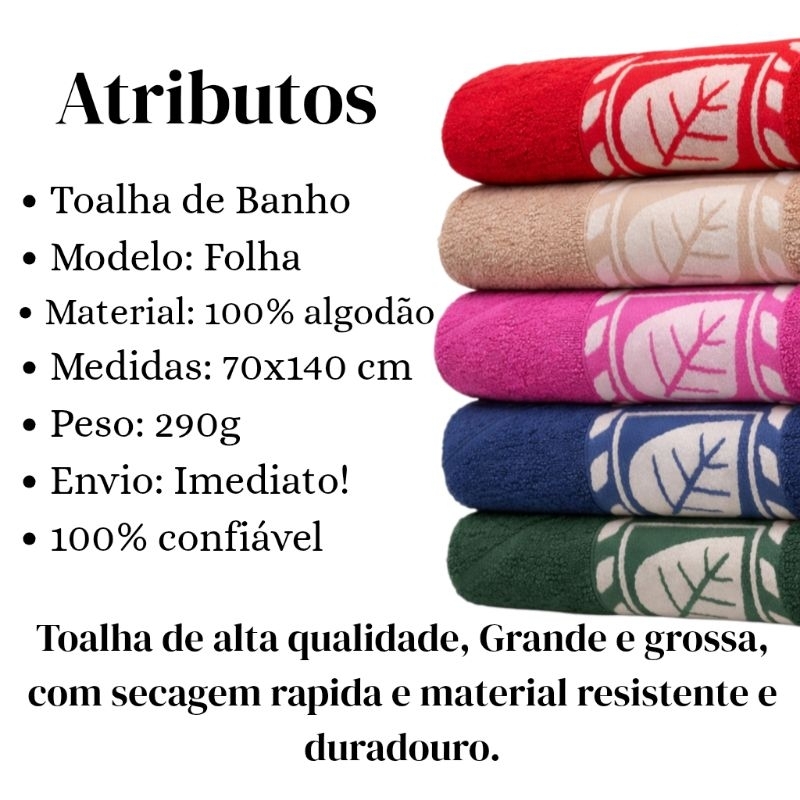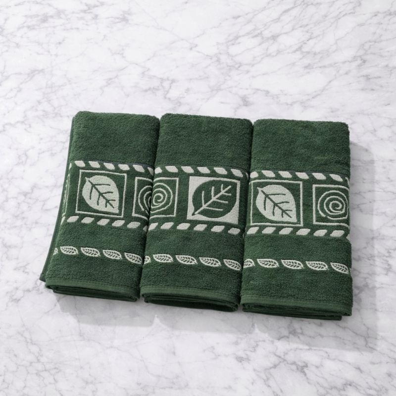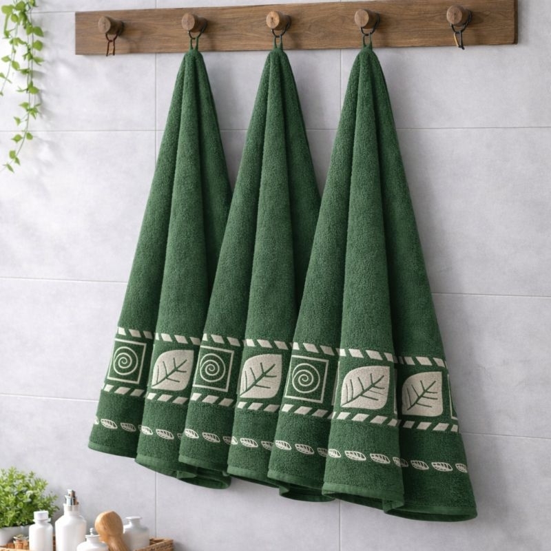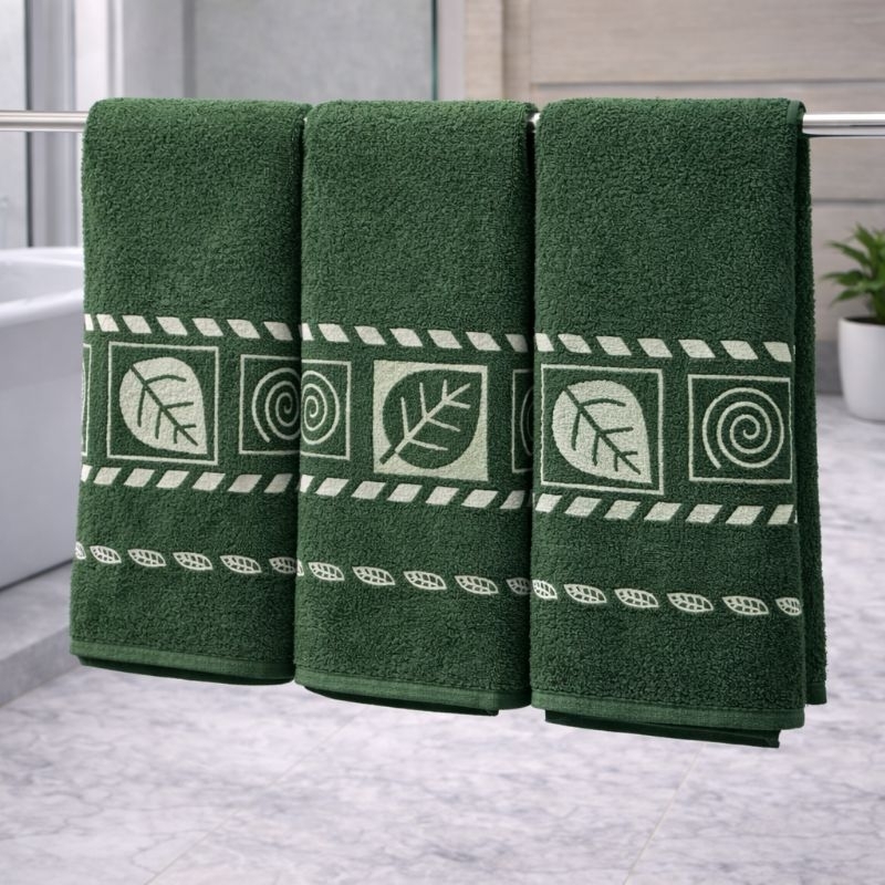 Kit 3 Toalhas De Banho Luxo Gigante Elegante Grossa Macia 70x140cm Algodão Folha Verde