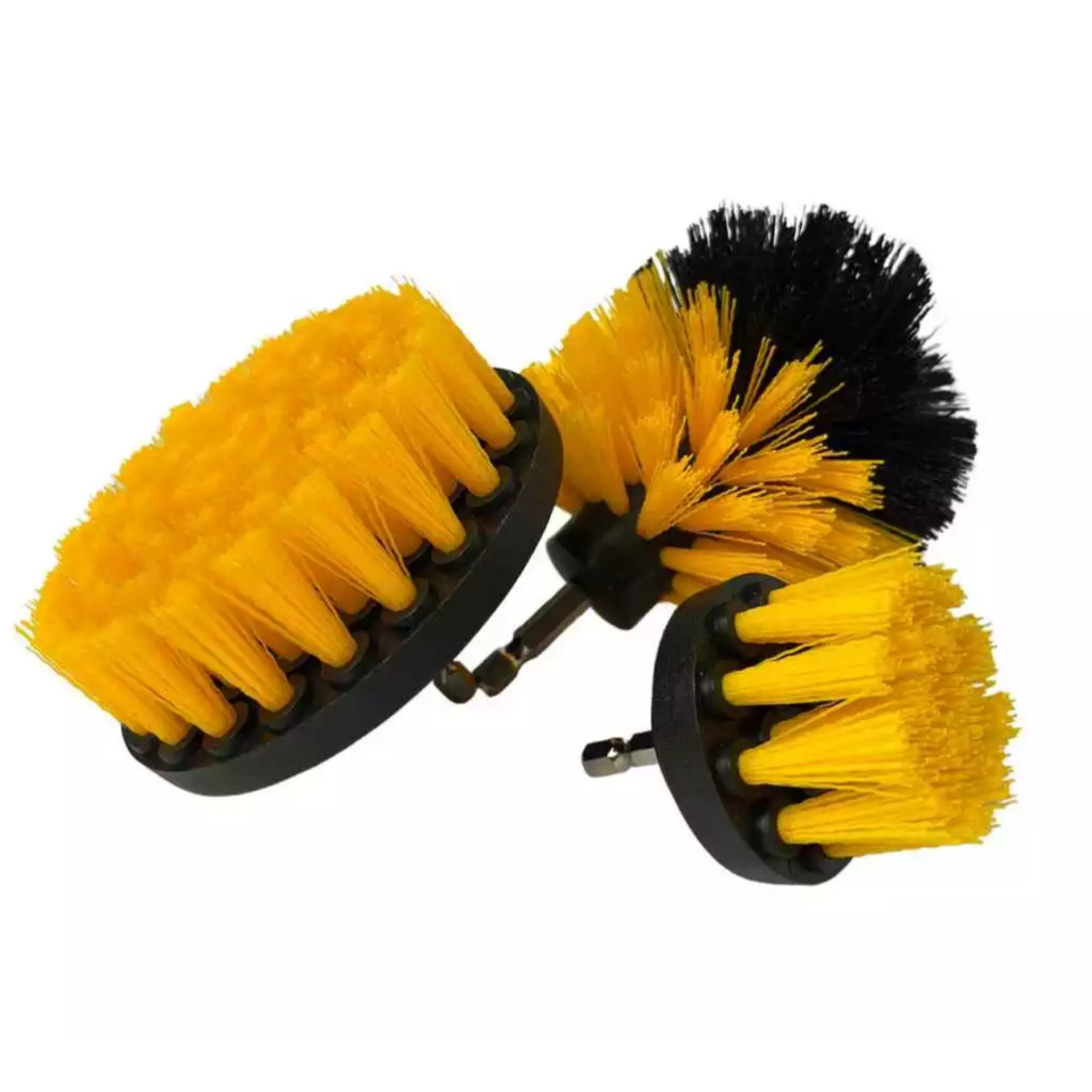 Kit Para Limpeza Pesada 03 Escova Rotativa Para Parafusadeira Furadeira branco azul amarelo