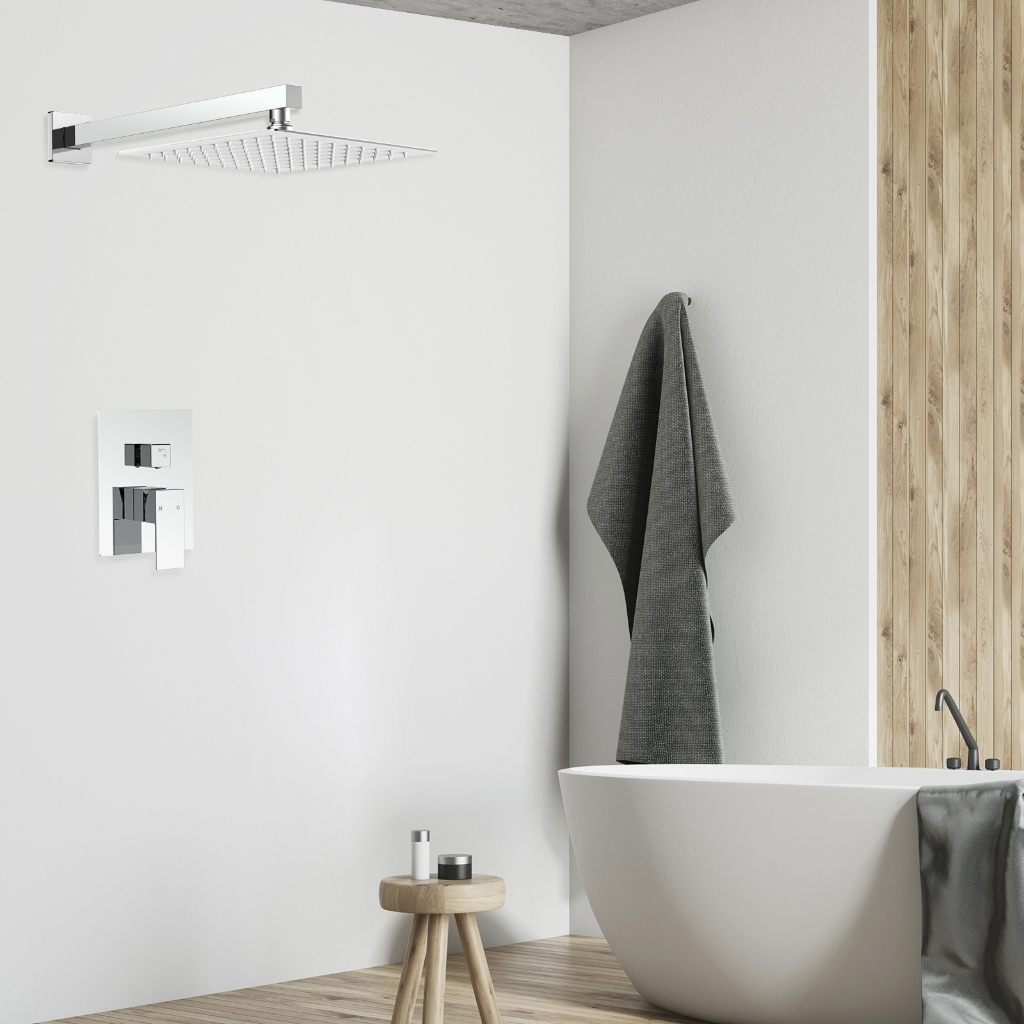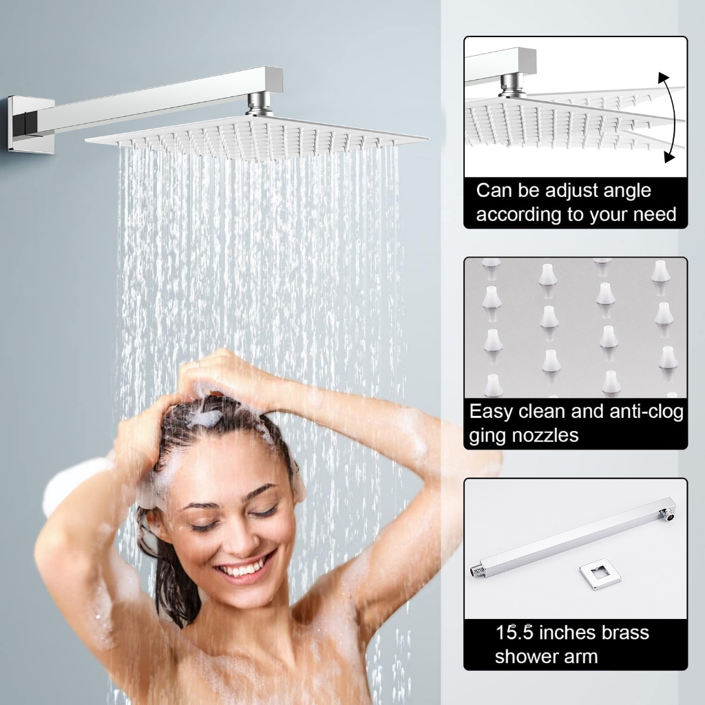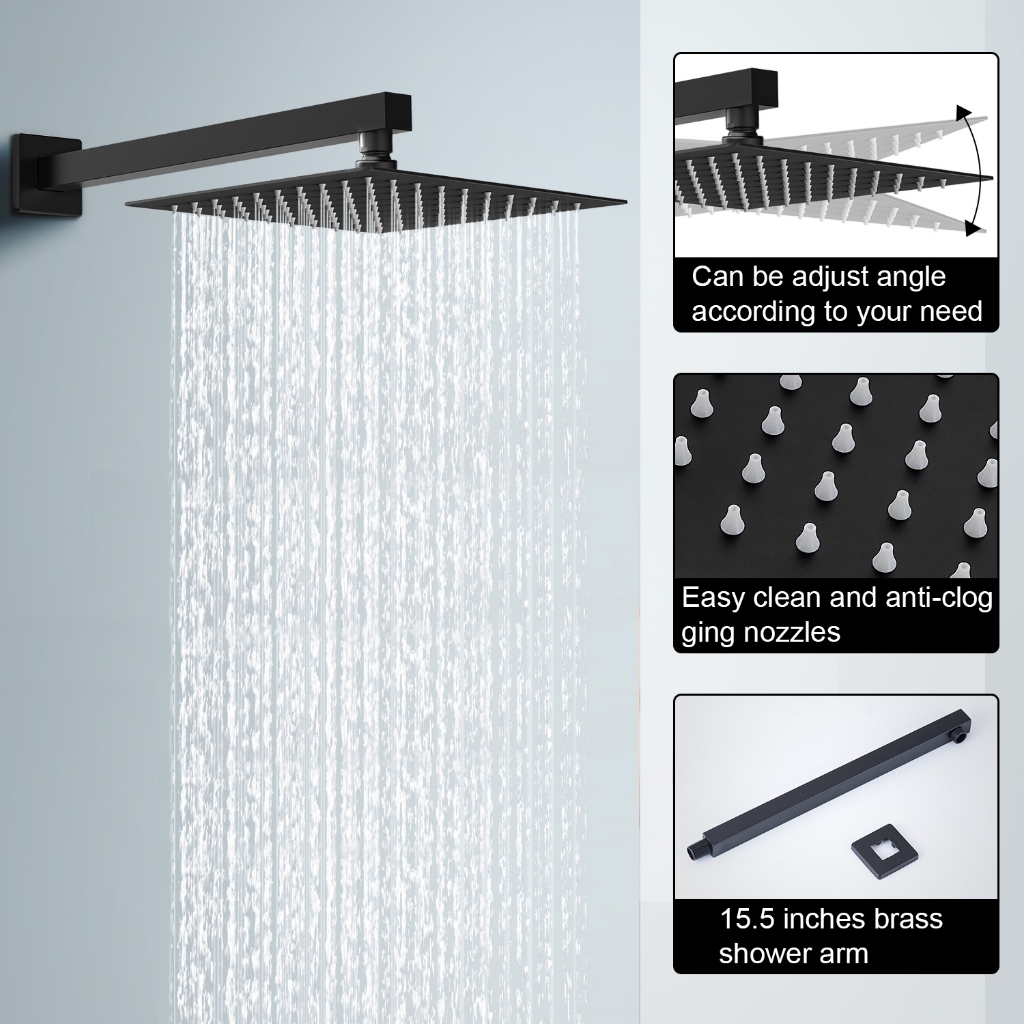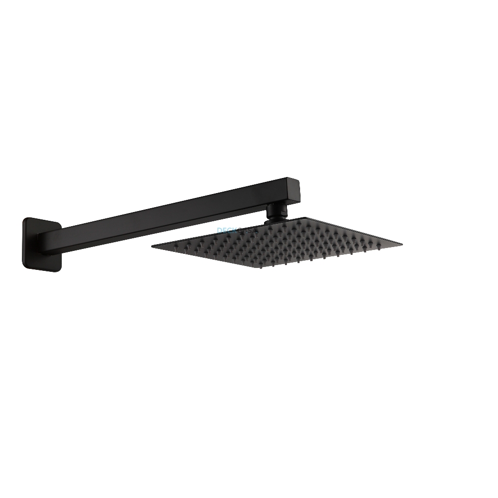 Ducha Chuveiro Quadrado Com Braço Inox 20x20cm Cor Preto Cromado Dourado