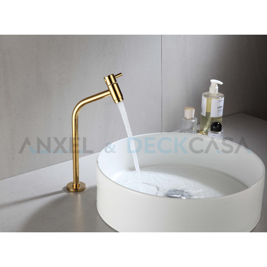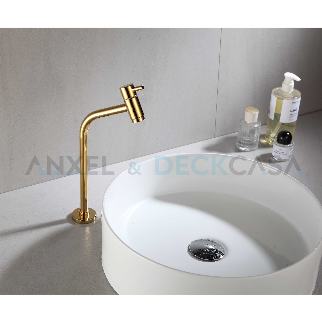 Torneira Fria de Banheiro Dourada Link 45º Bica Alta 1/4 Volta Lavatório Aço Inox Cromado Preto
