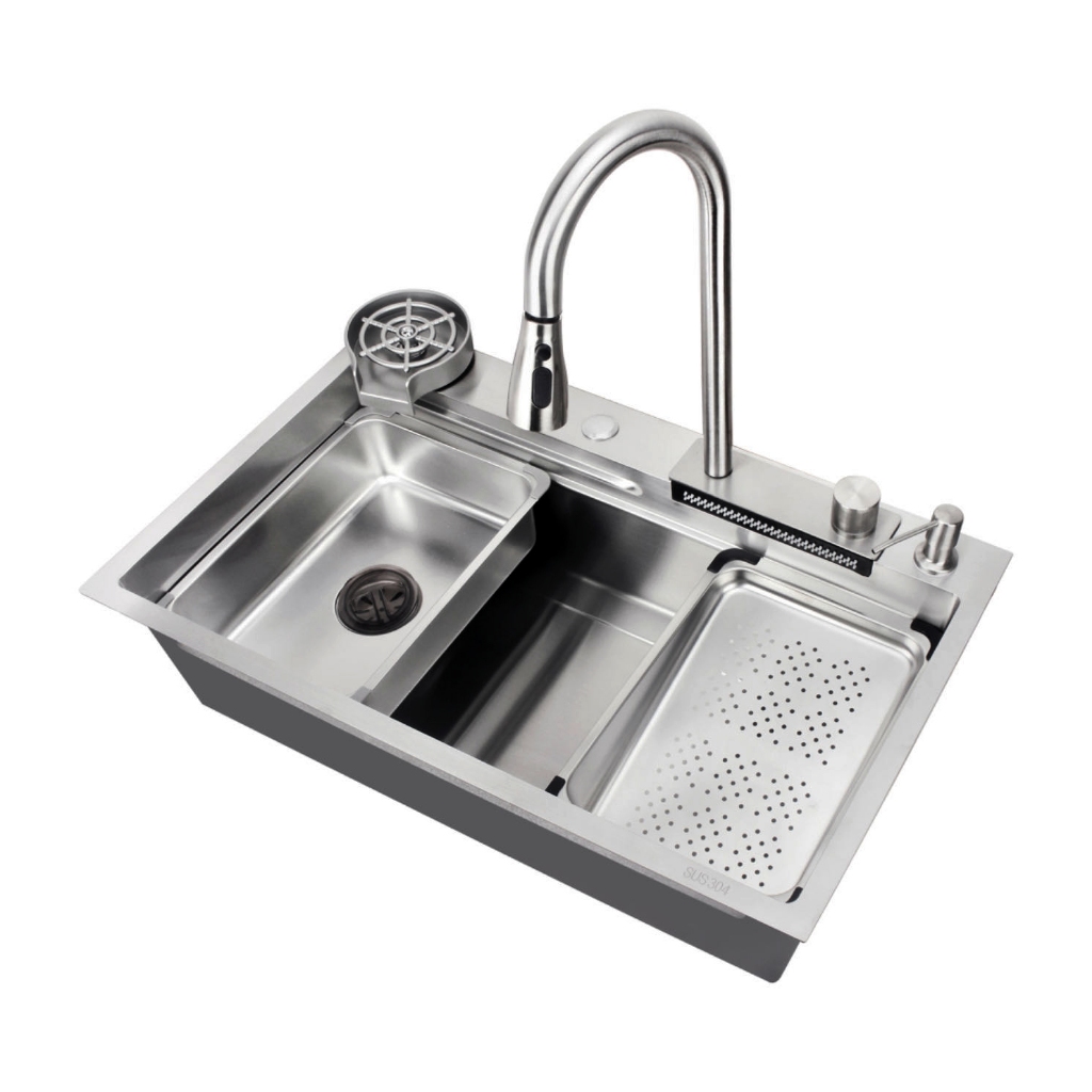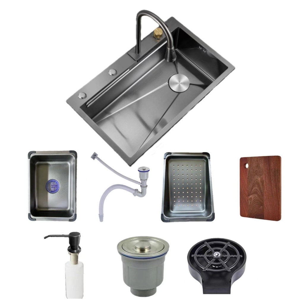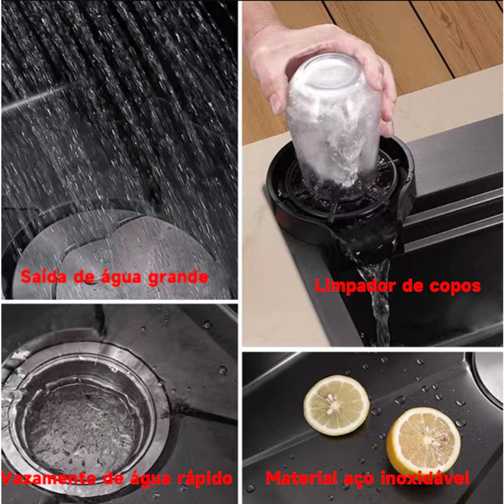 Cuba Gourmet Premium Cascata Torneira Para Cozinha Inox304 Quadrada 75X46 Com Lavador de Copo Tábua