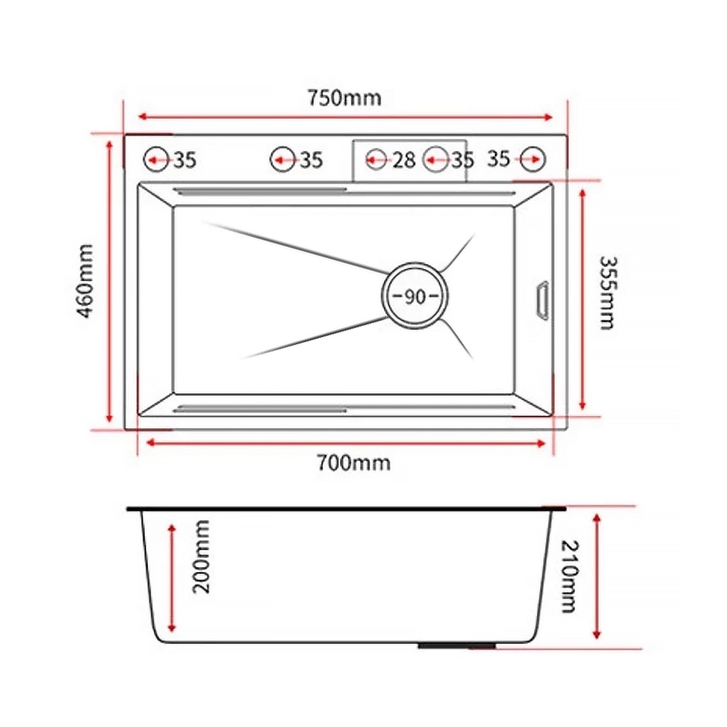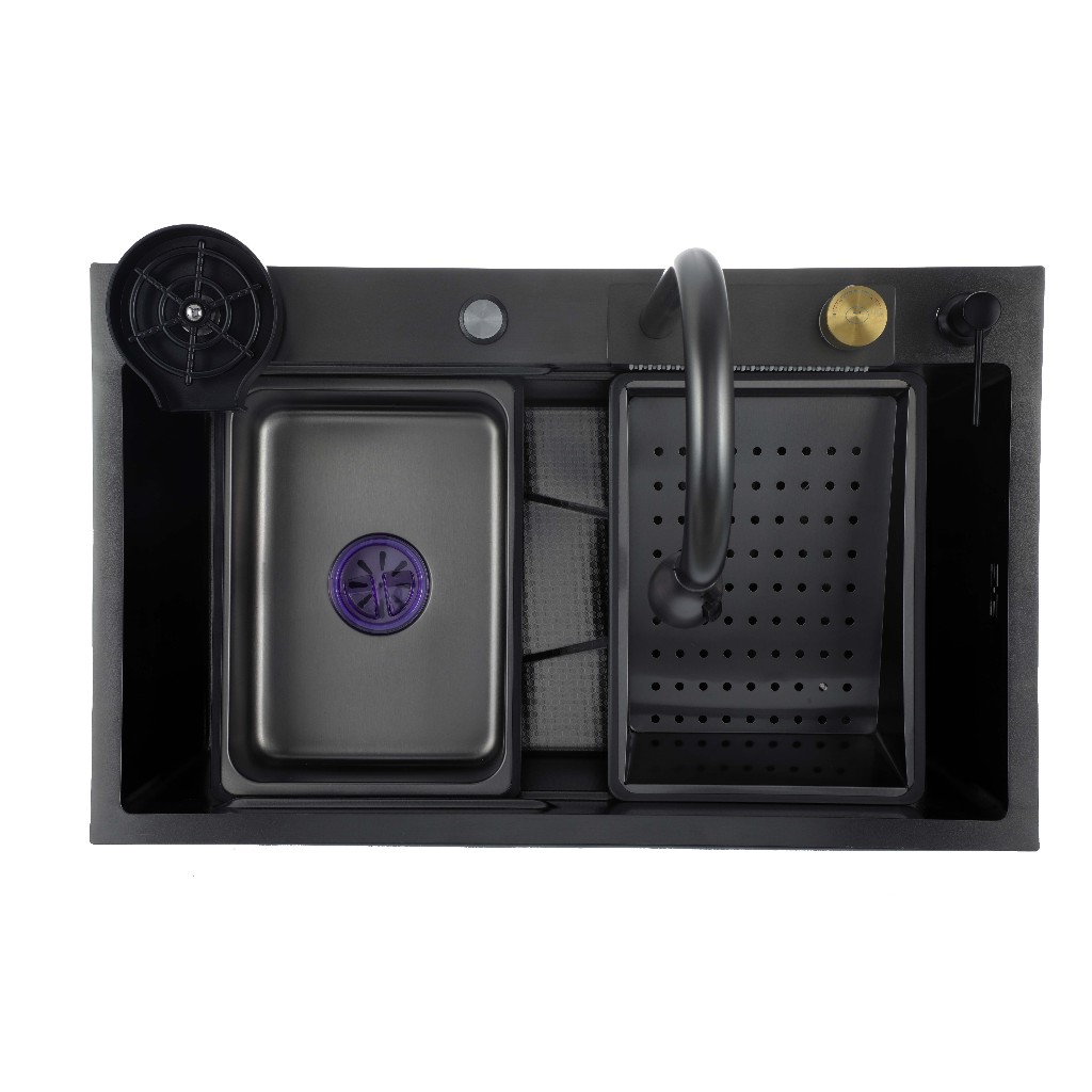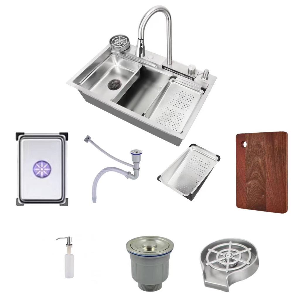 Cuba Gourmet Premium Cascata Torneira Para Cozinha Inox304 Quadrada 75X46 Com Lavador de Copo Tábua