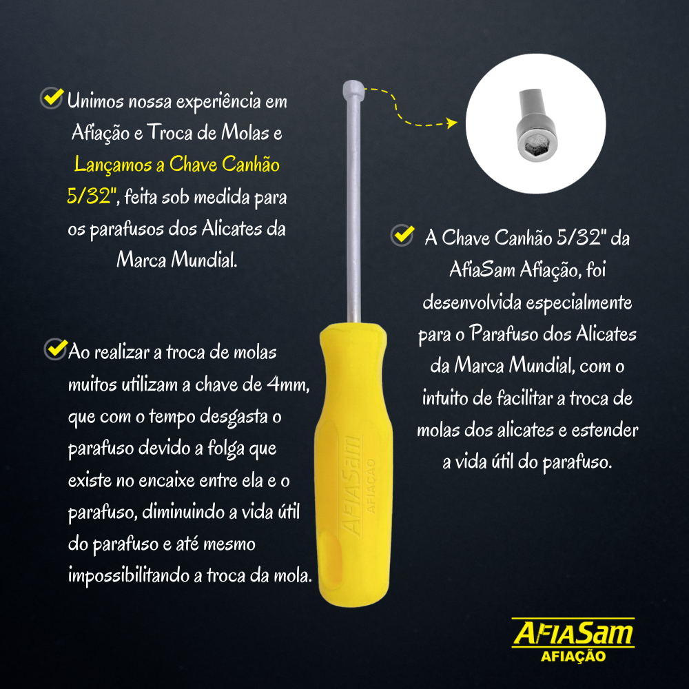 Chave Canhão 5/32" Troca de Molas Alicates Mundial 522 / 577 / 722 / 735 / 772 / 775 / 776 / 770 / 777 / 778-EP