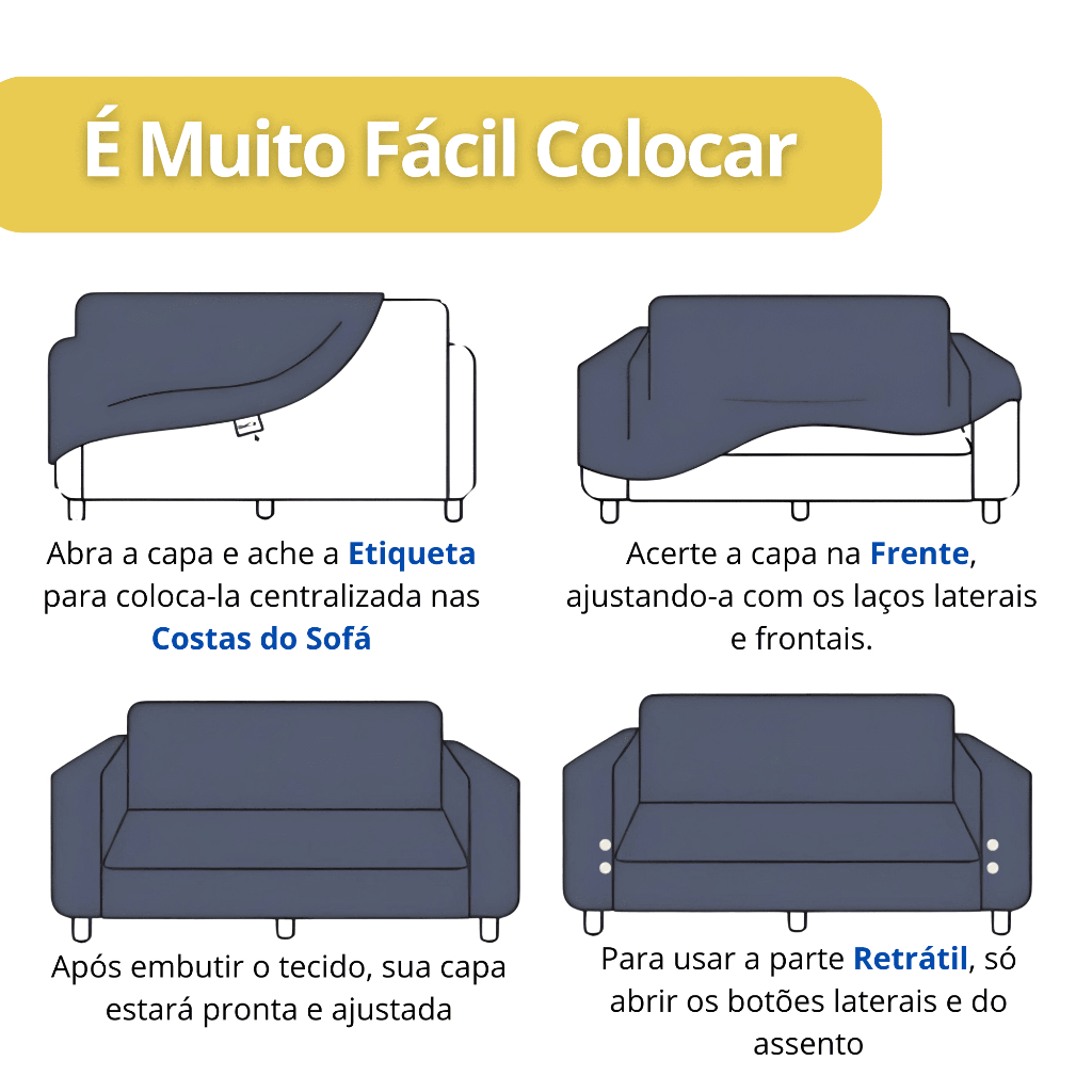Capa p/ Sofá Retrátil e Reclinável em Tecido Gorgurão - Veste Sofás de 1,96m até 2,35m