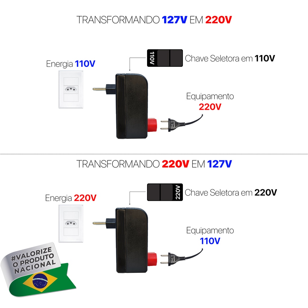 Auto Trafo Bivolt 100va Conversor Voltagem 70w 127/220 parede