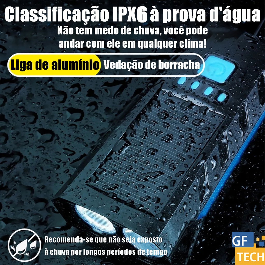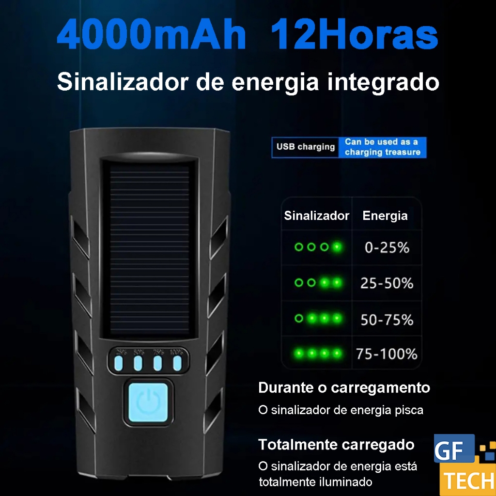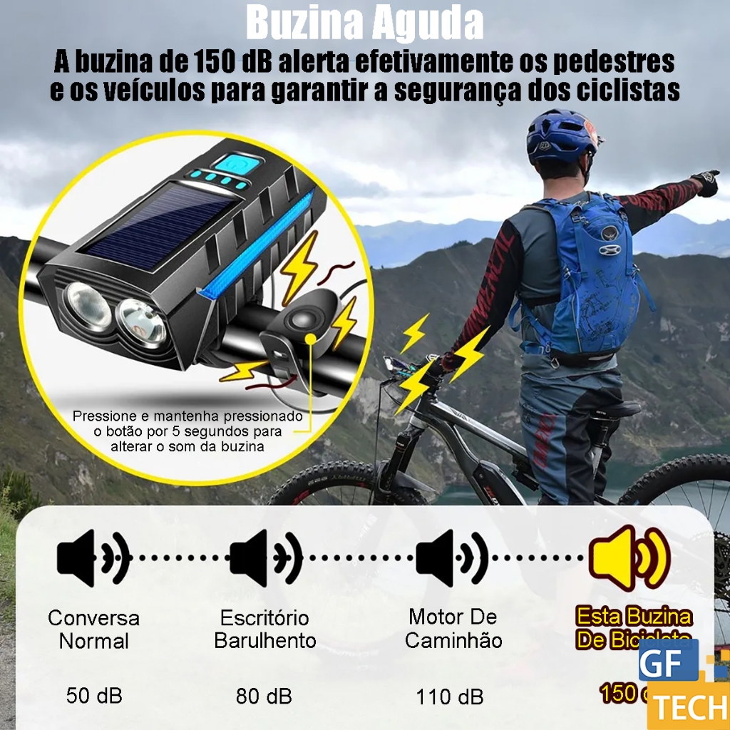 Lanterna Bike Solar Com Buzina E Power Bank 12H Recarregável À Prova D'Água Farol Para Bicicleta