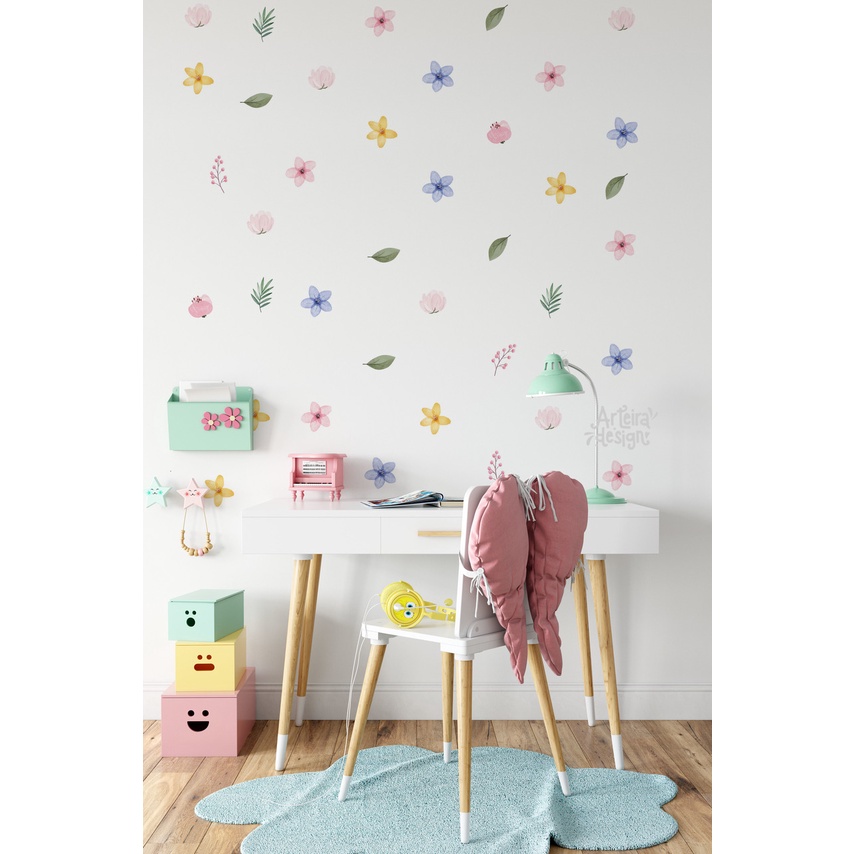 ADESIVO DE PAREDE FLORES AQUARELA KIT COM 78 ADESIVOS