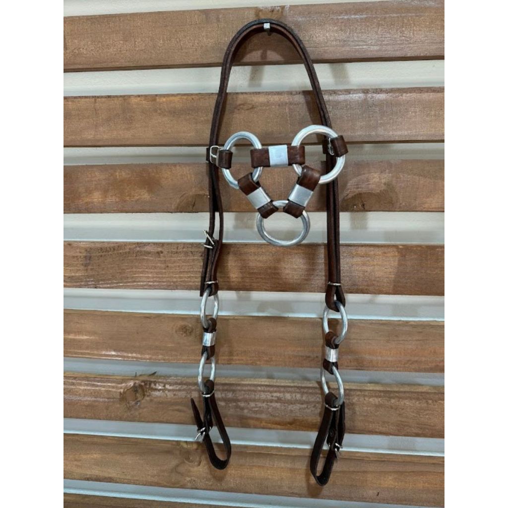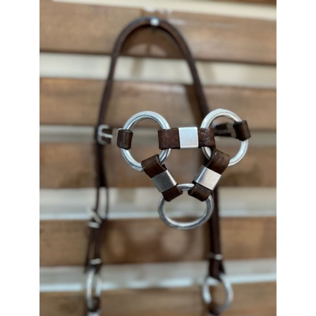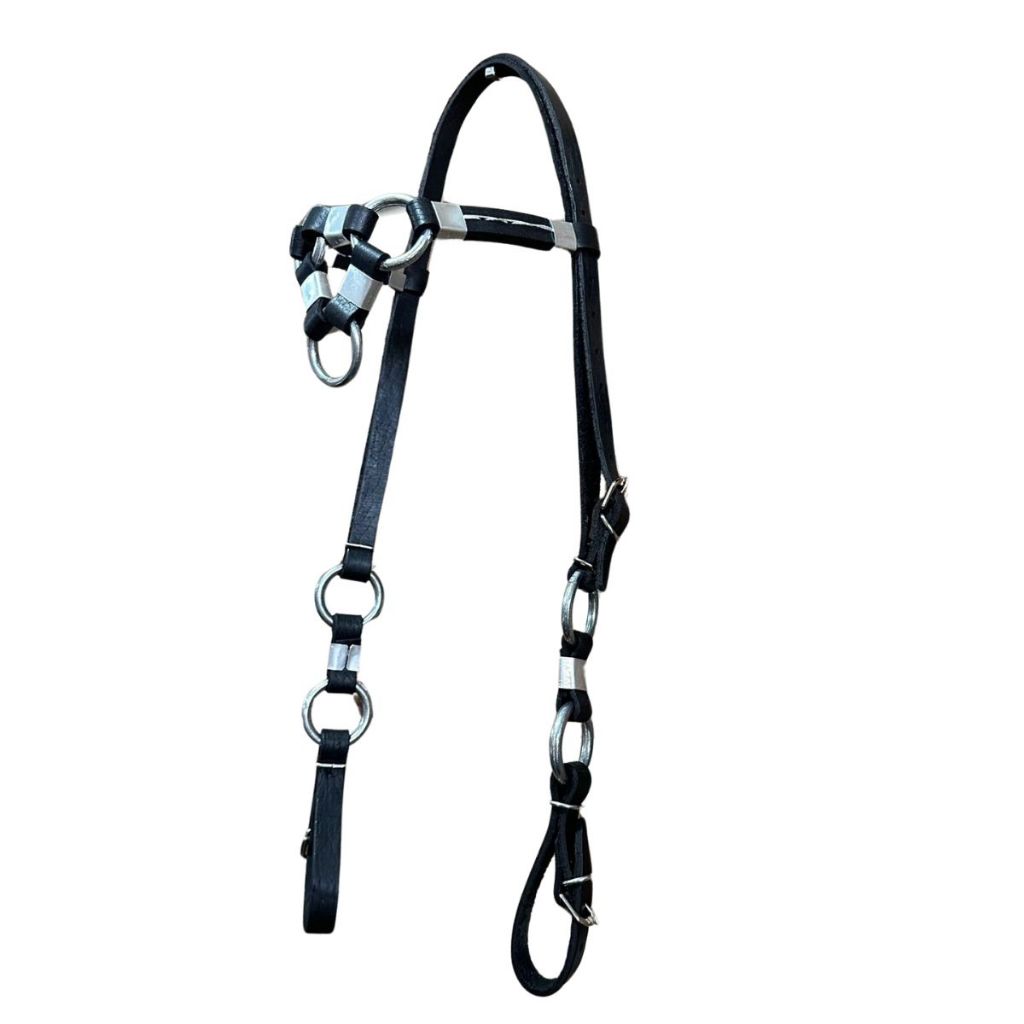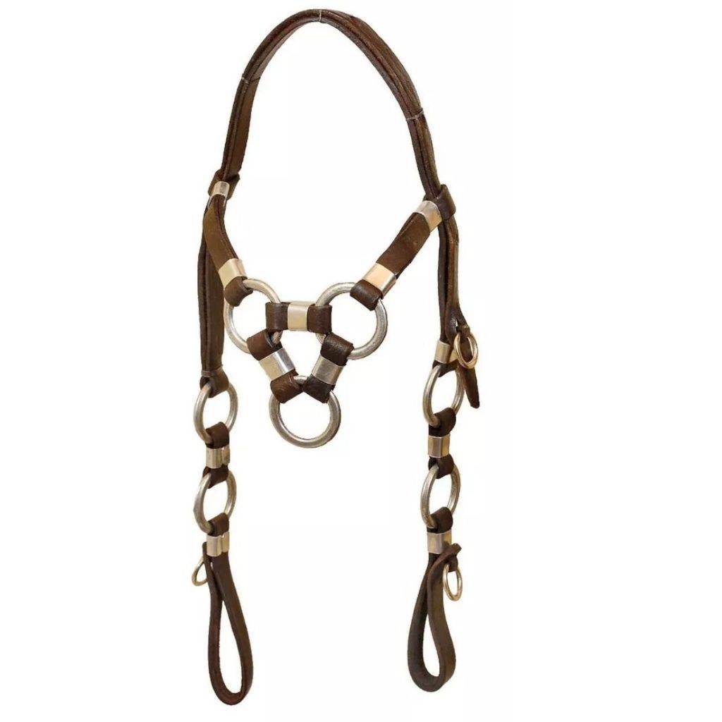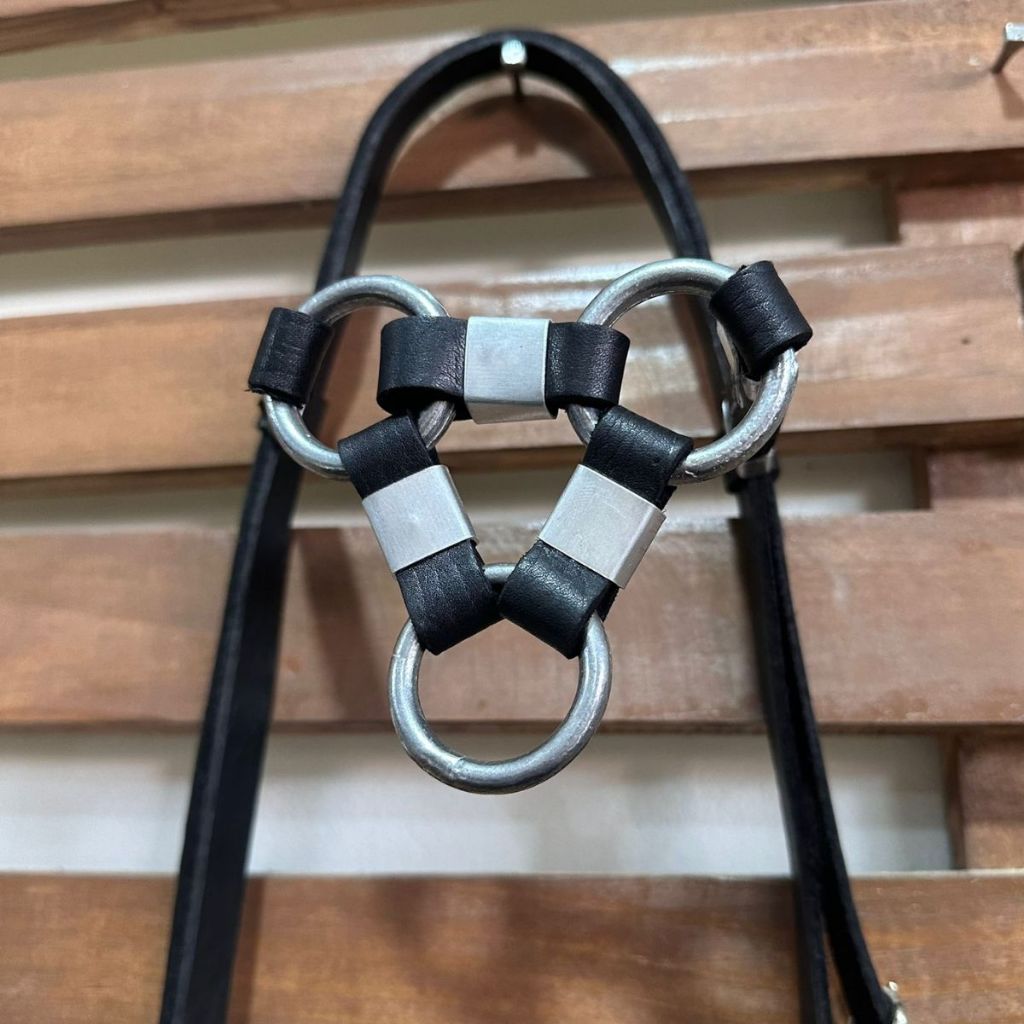 Cabeçada De Couro Três Argolas Luxo Para Cavalos E Mulas