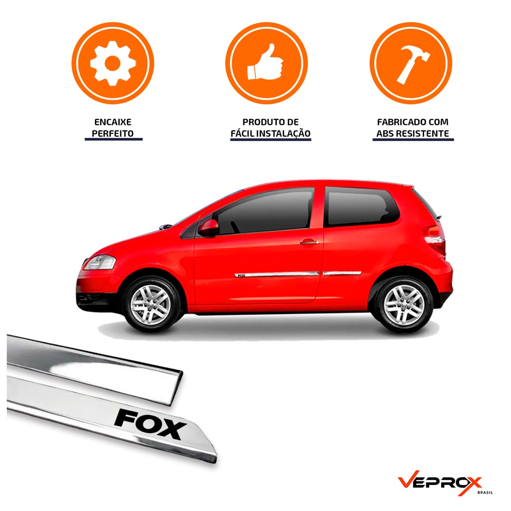 Jogo Friso Lateral Slim Fox 2003 2004 2005 2006 2007 2008 2009 2010 2011 2012 Kit Cromado Personalizado 2 Portas