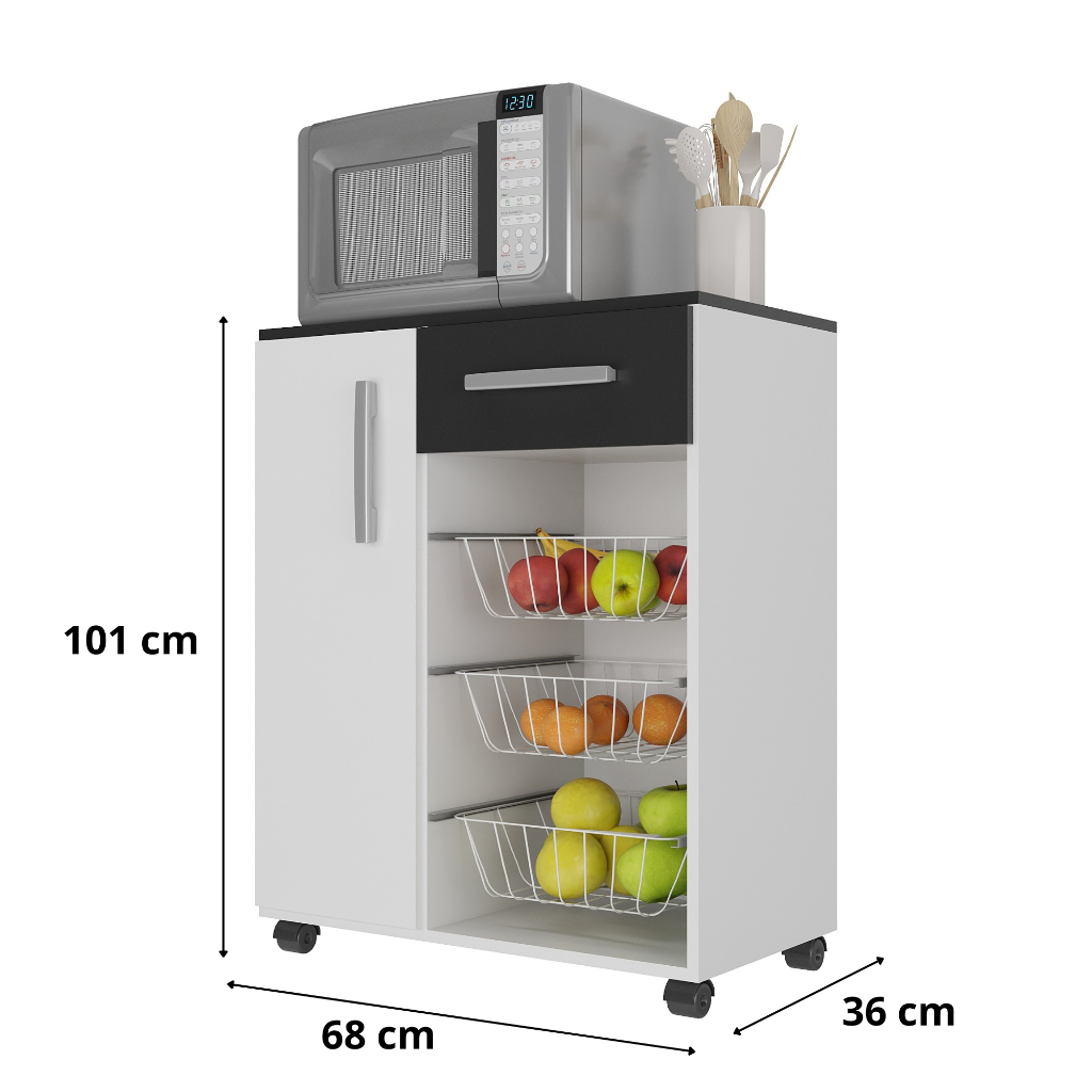 Balcão Cozinha Prático Com 1 Portas 3 Cestos Fruteira Gaveta
