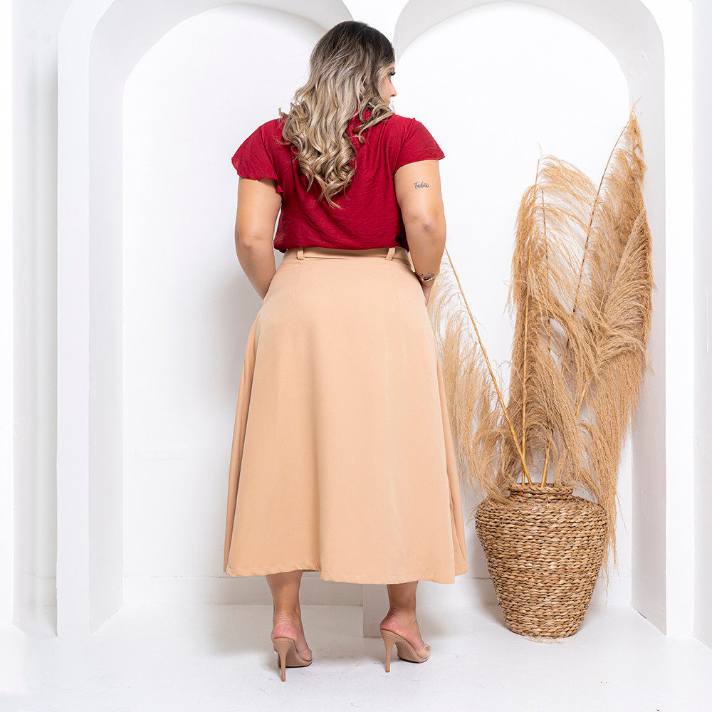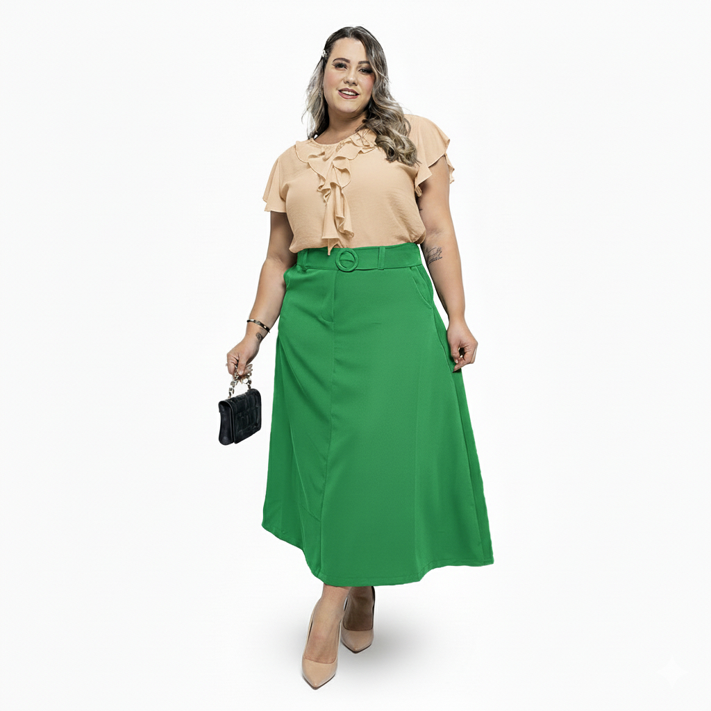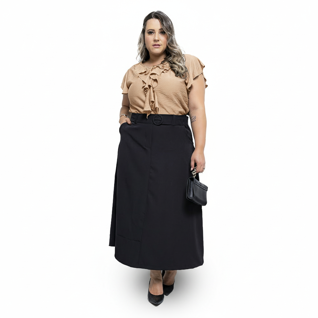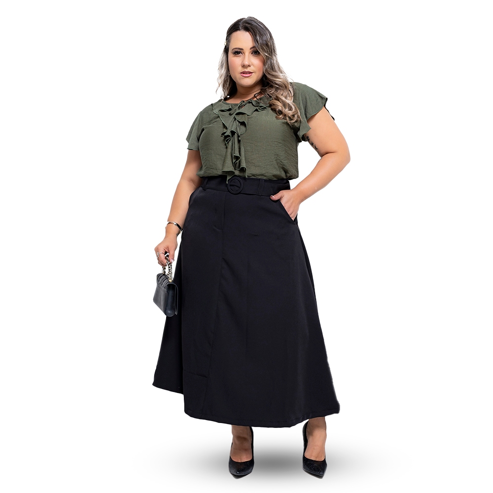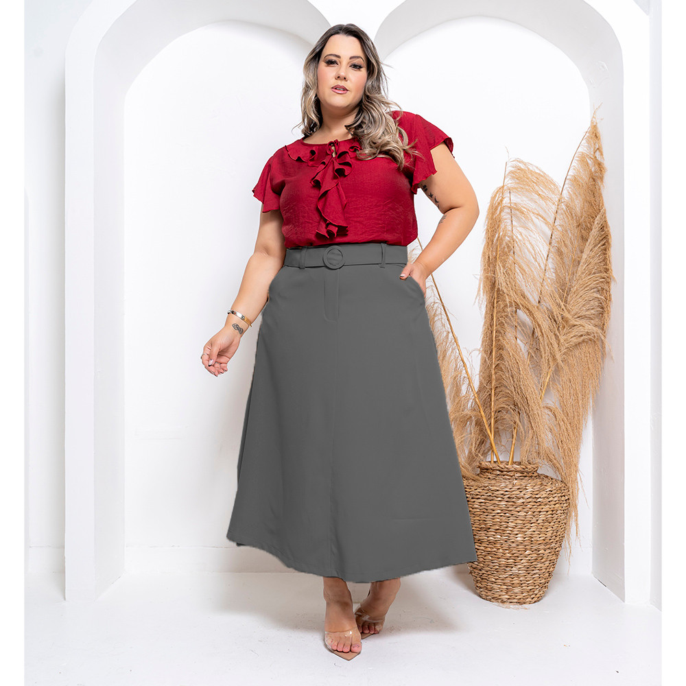 Saia Longa Alfaiataria Com Cinto Exclusivo e Zíper Lateral