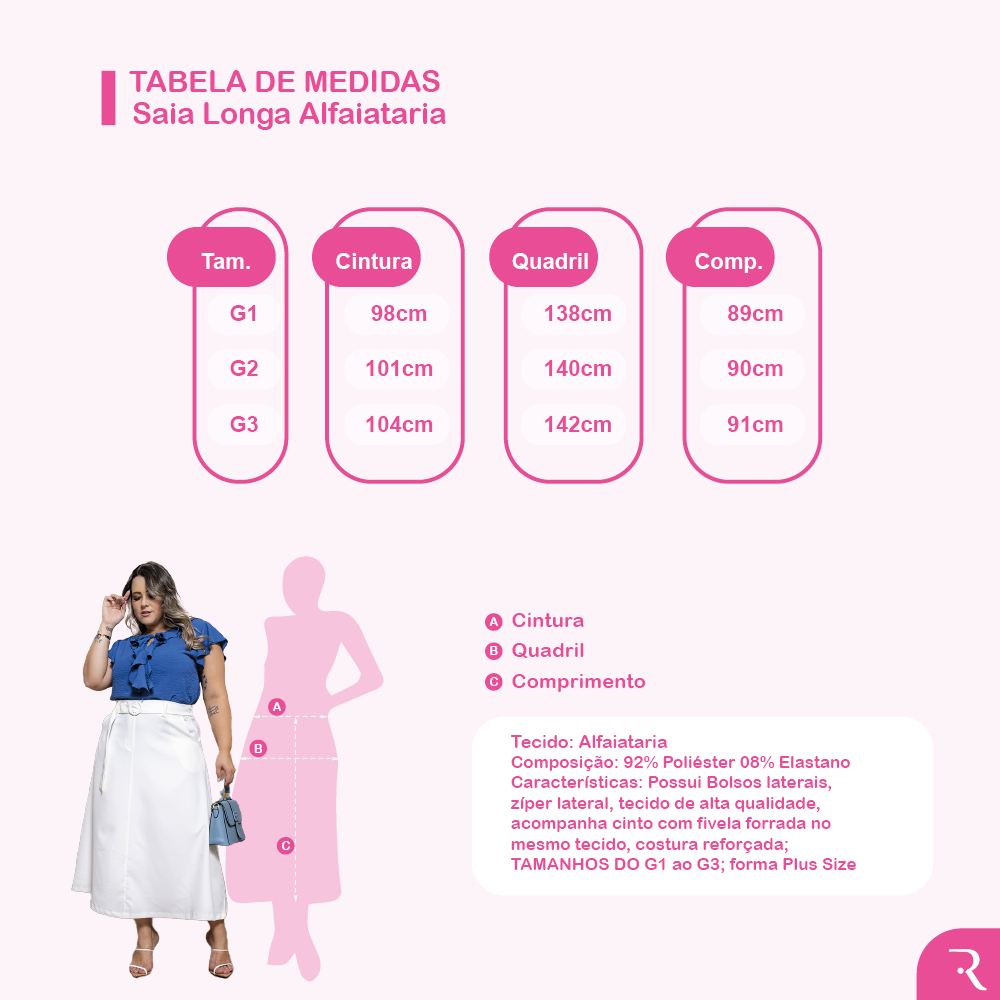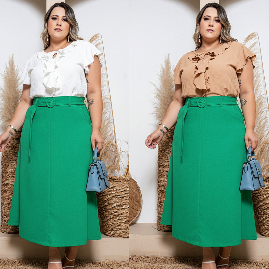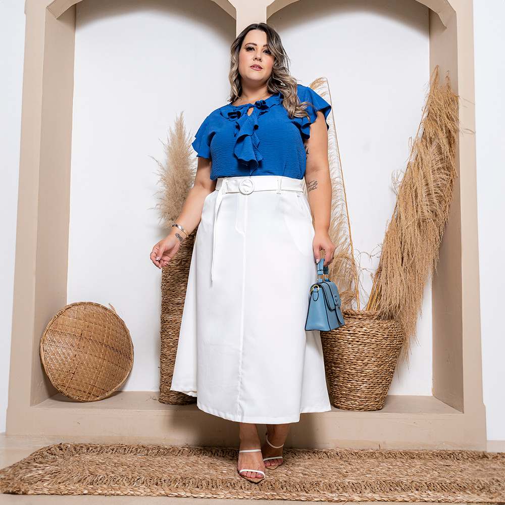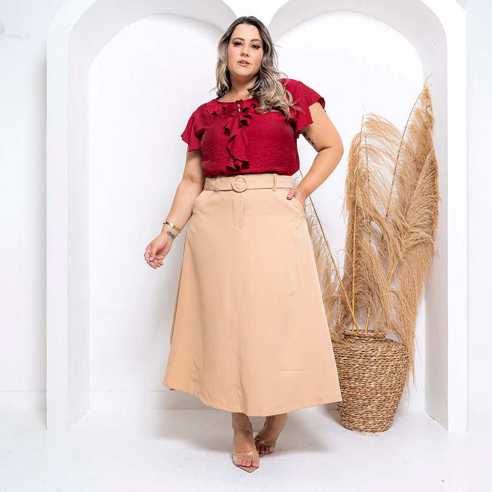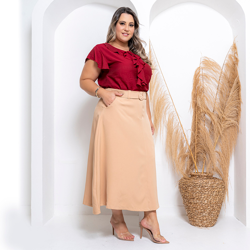 Saia Longa Alfaiataria Com Cinto Exclusivo e Zíper Lateral