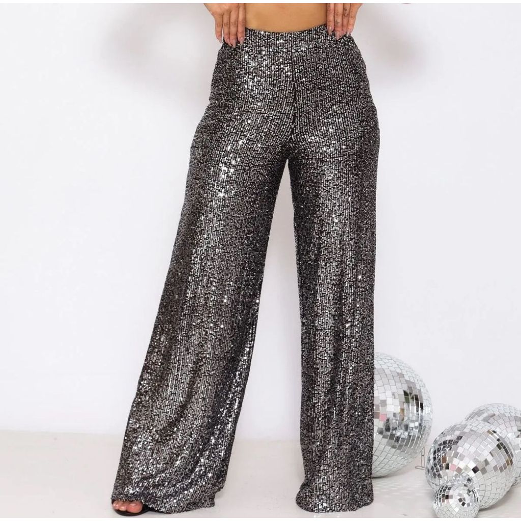 Calça Pantalona Feminina Para Festas Paetê Brilho Promoção