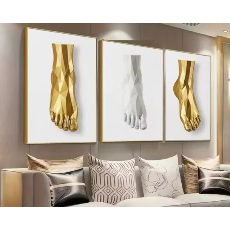 Quadro Decorativo Triplo Pé Dourado Decoração Podologia Arte Moderna 3D Minimalista Luxo