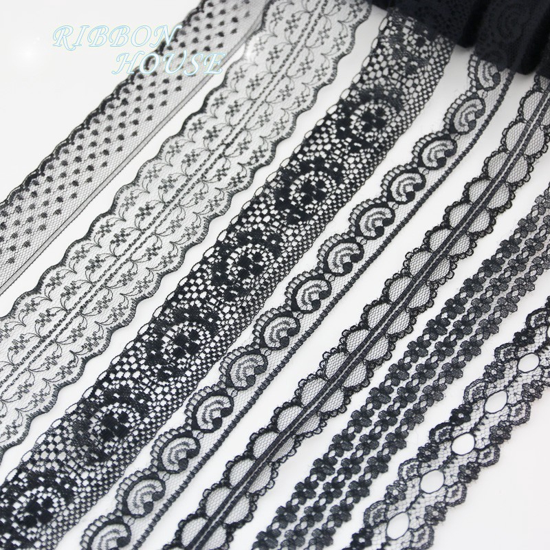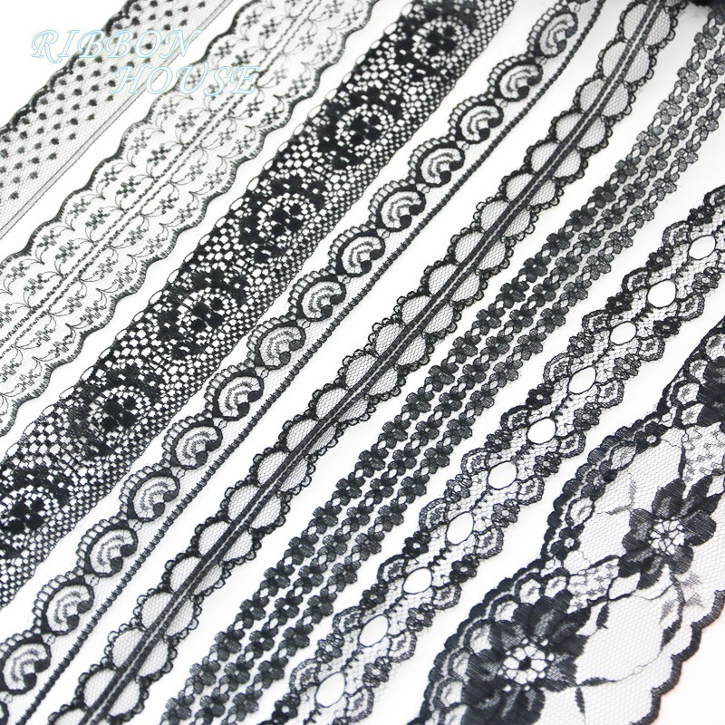 (10 Jardas/Rolo) Tecido De Renda Preta Decoração Linda Fita De Material De Embalagem De Presente