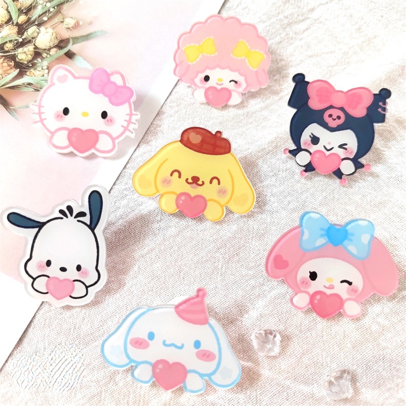Broche De Acrílico De Gato Fofo De Desenho Animado , Coração Rosa , Abraçando Cachorro , Estudante , Bolsa Infantil , Ac